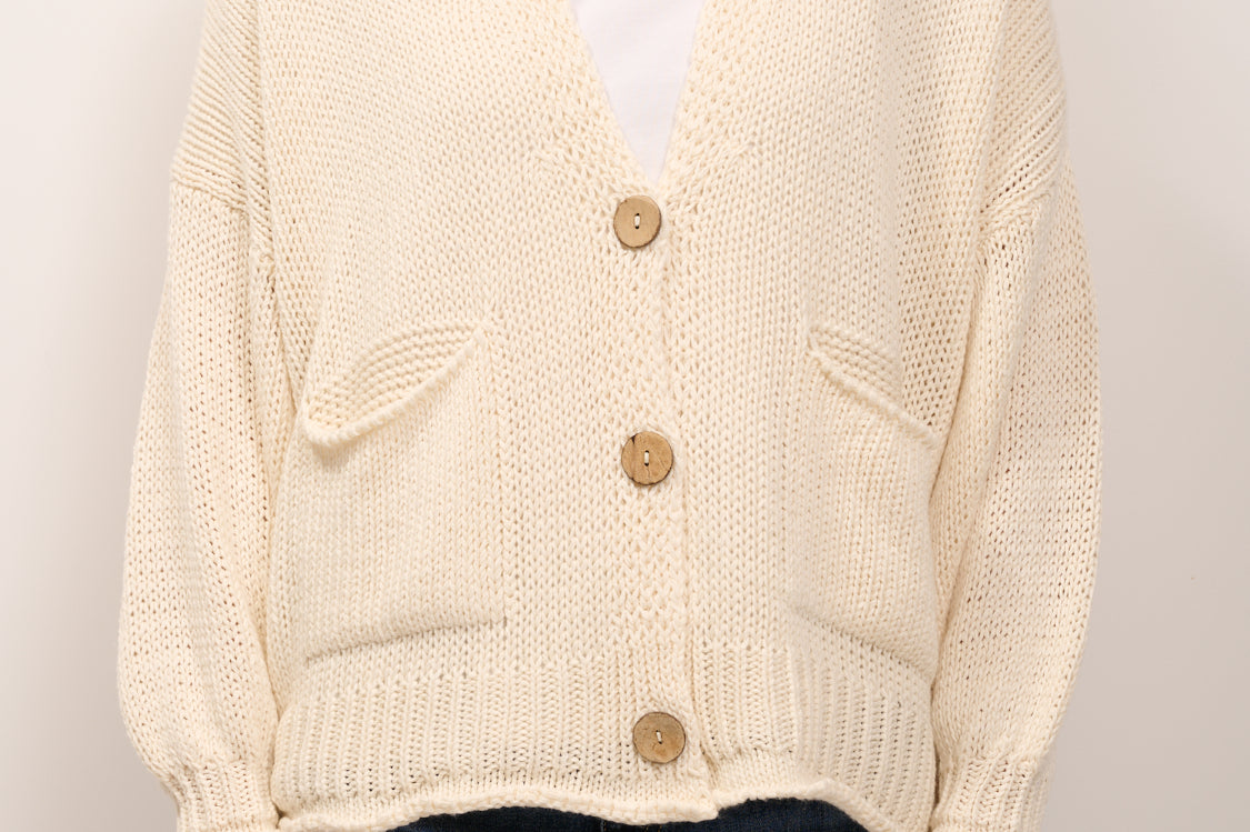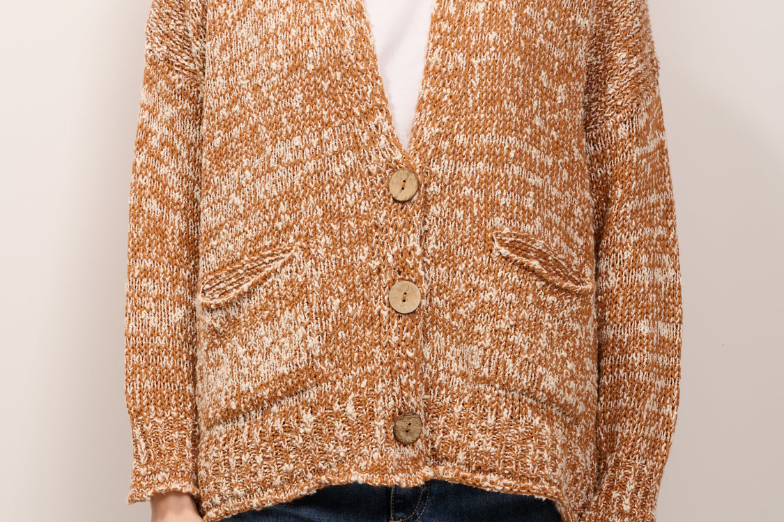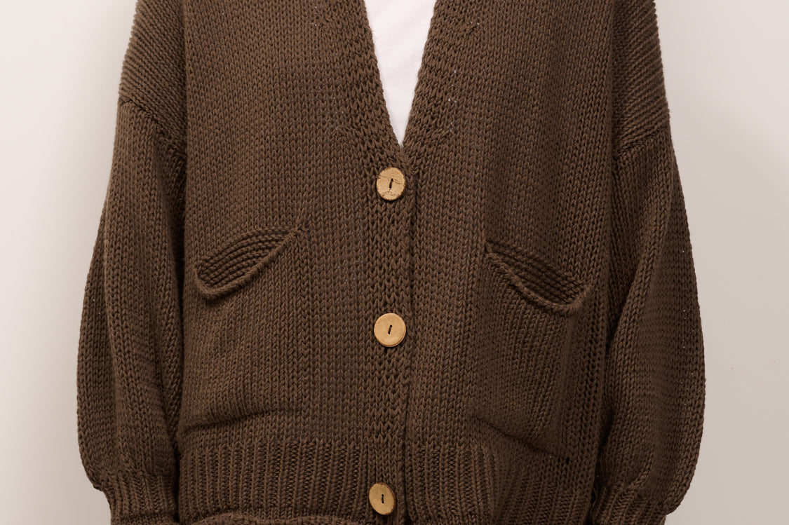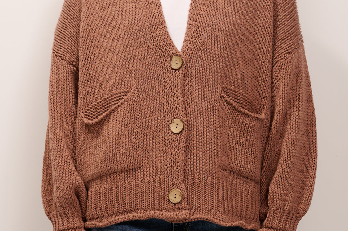 - Cardigan: maglione aperto sul davanti, con bottoni o cerniera. Versatile per occasioni casual o semi-formali; può essere indossato sopra una camicia o una t-shirt.