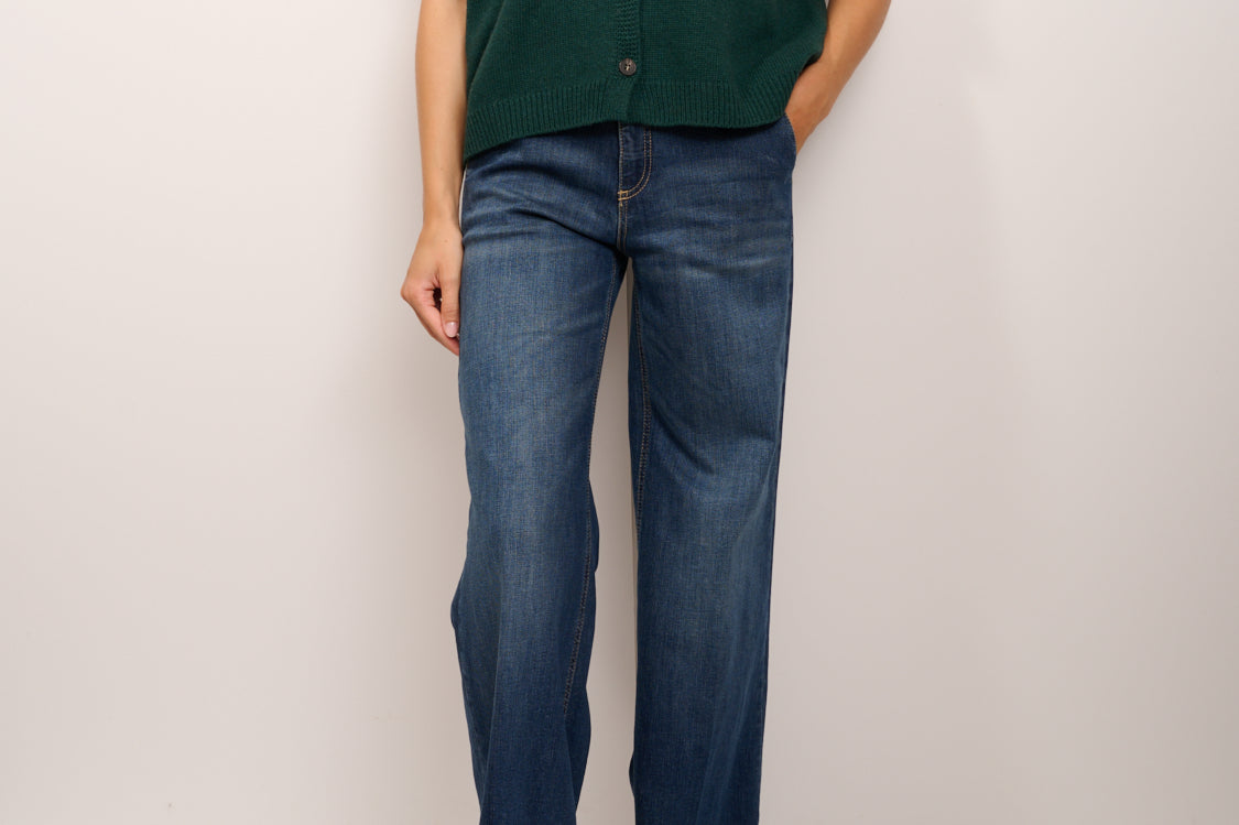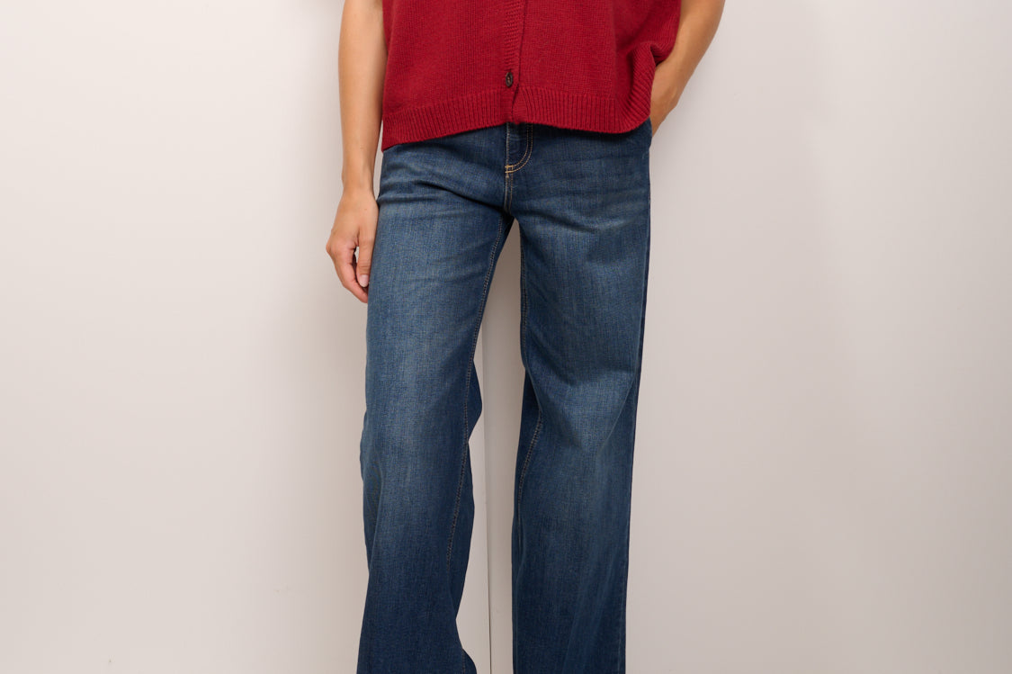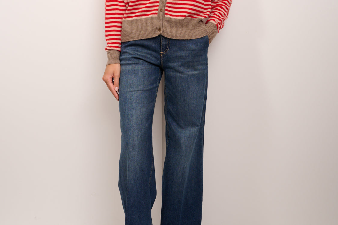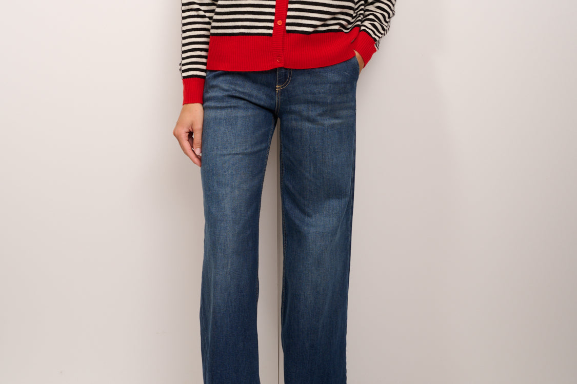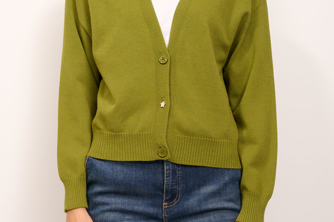 You can combine a slim-fit cardigan with a classic shirt and tailored trousers. Leave the cardigan open for a layered and professional effect. You can pair it with pumps or elegant loafers.