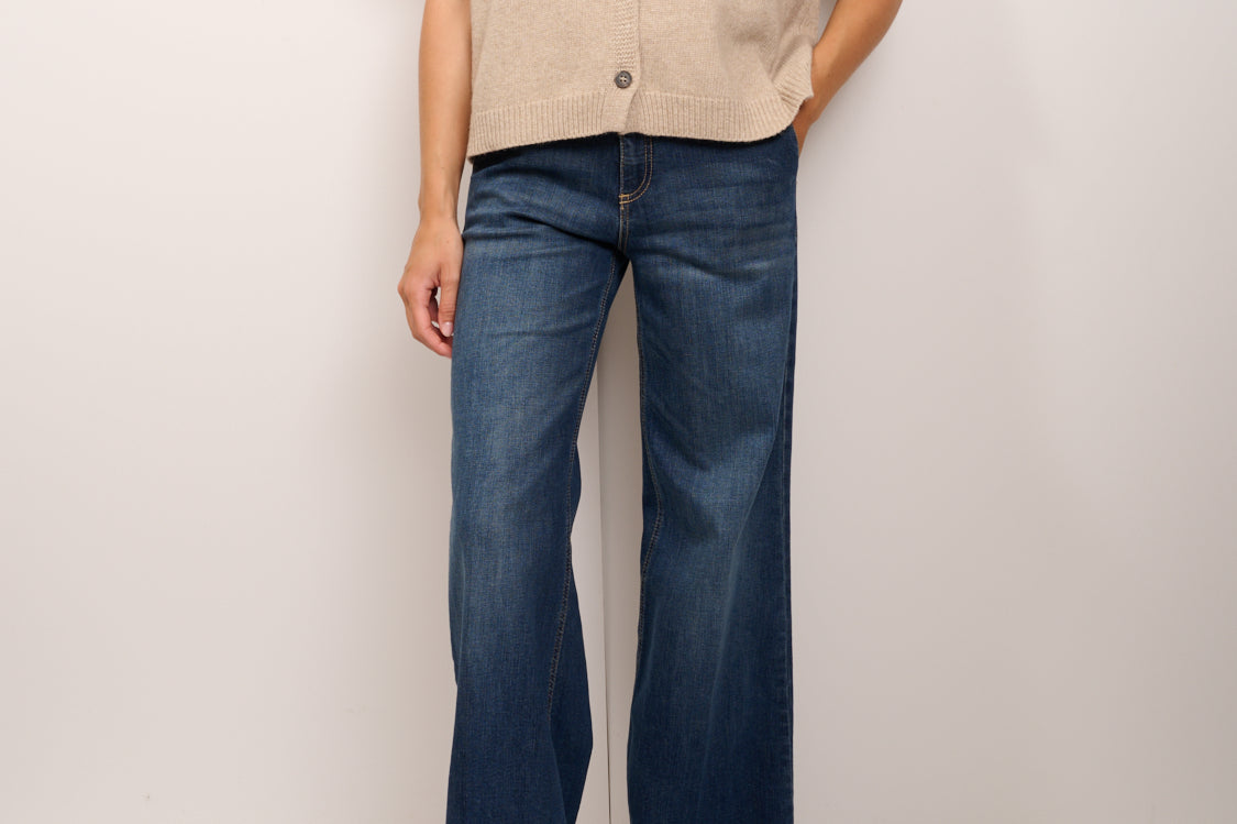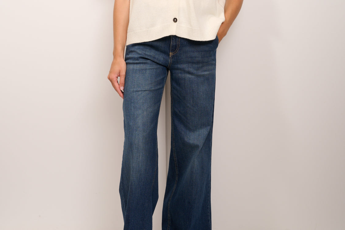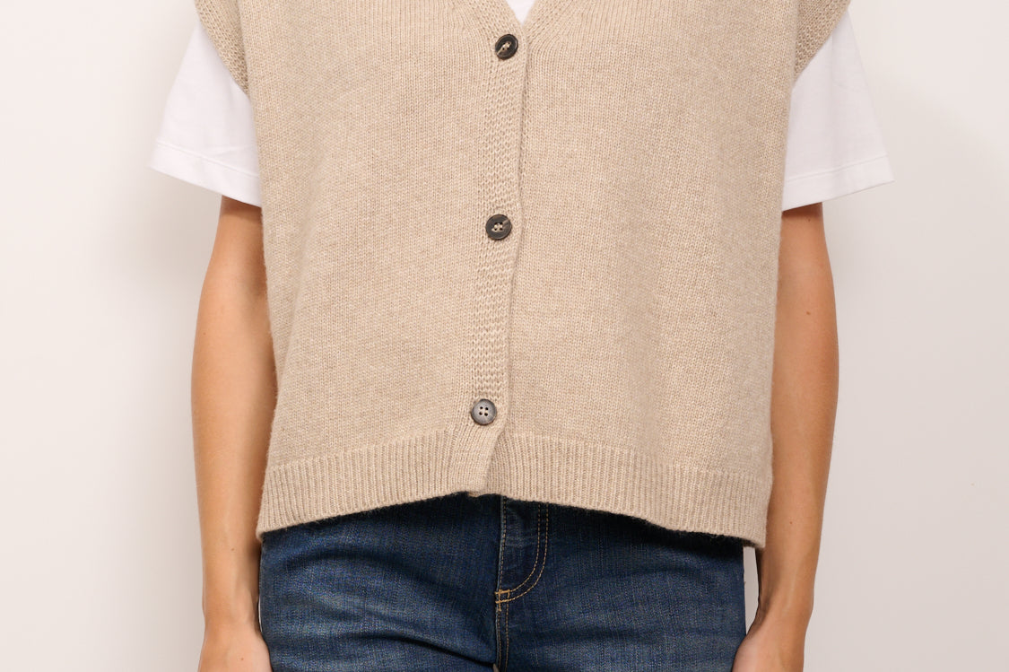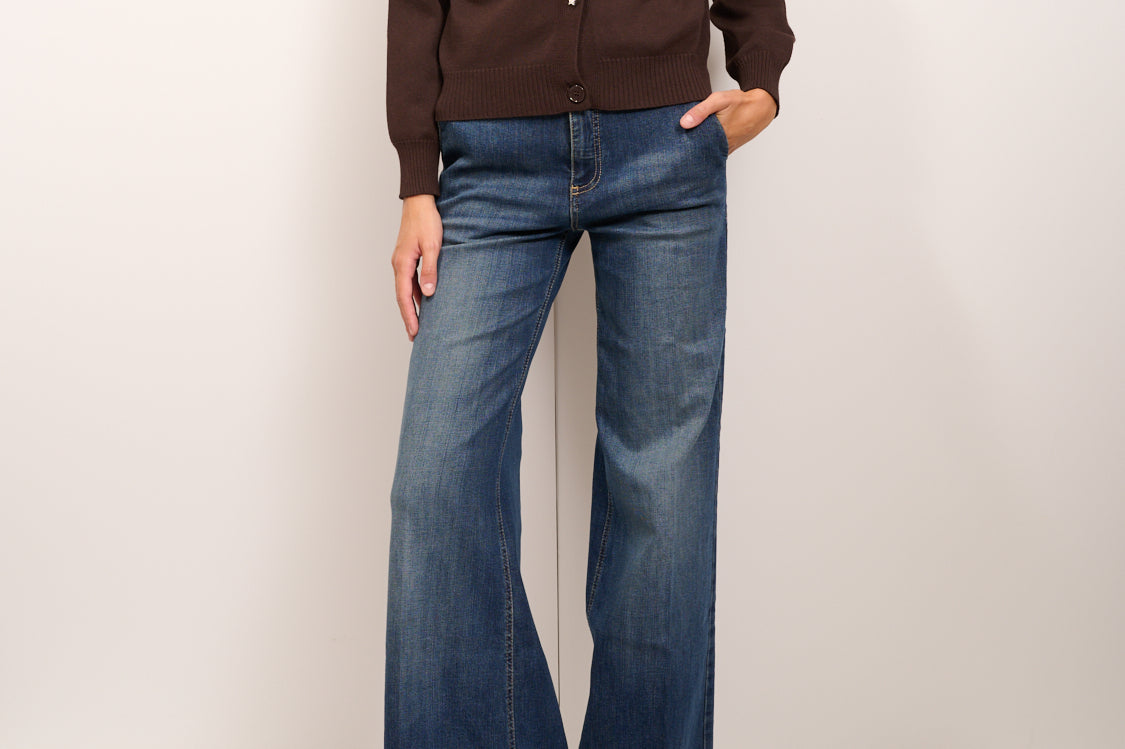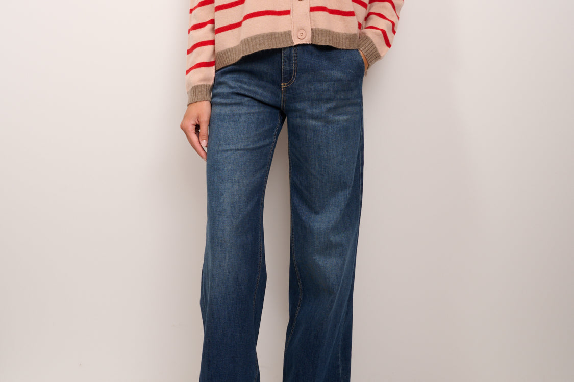 You can combine a slim-fit cardigan with a classic shirt and tailored trousers. Leave the cardigan open for a layered and professional effect. You can pair it with pumps or elegant loafers.