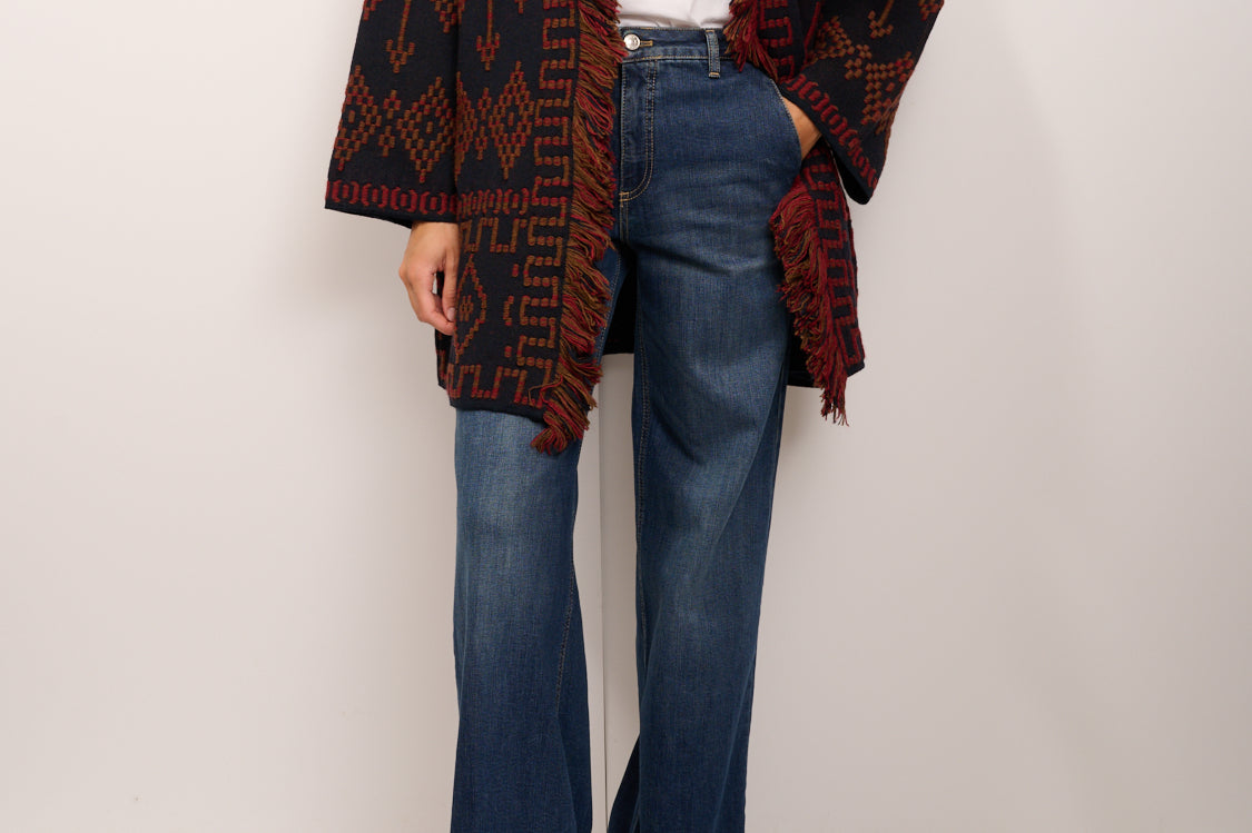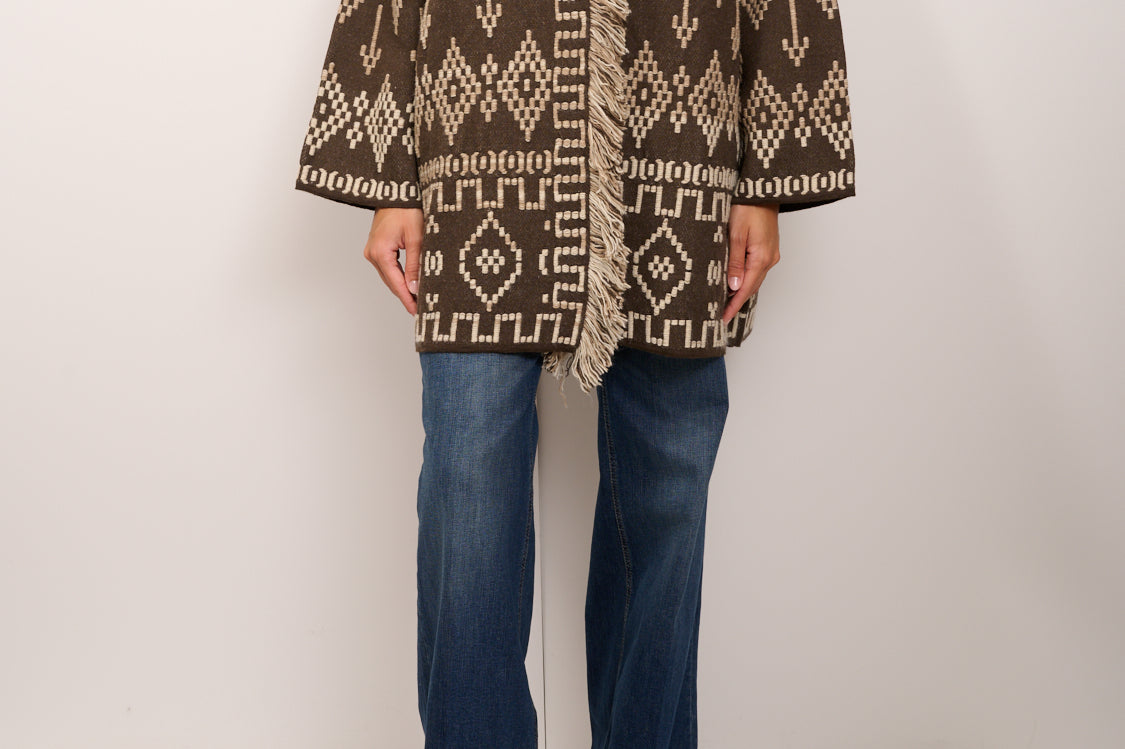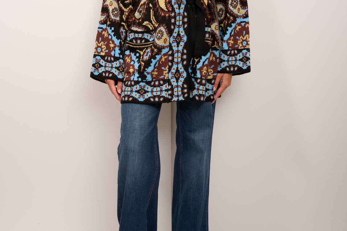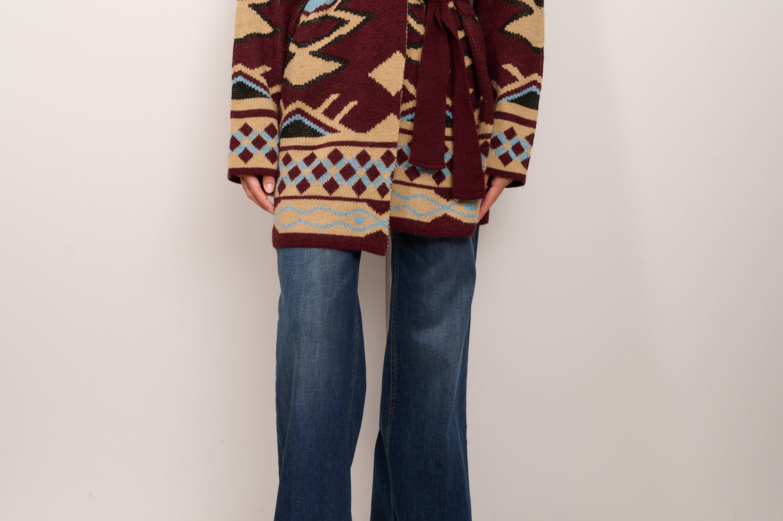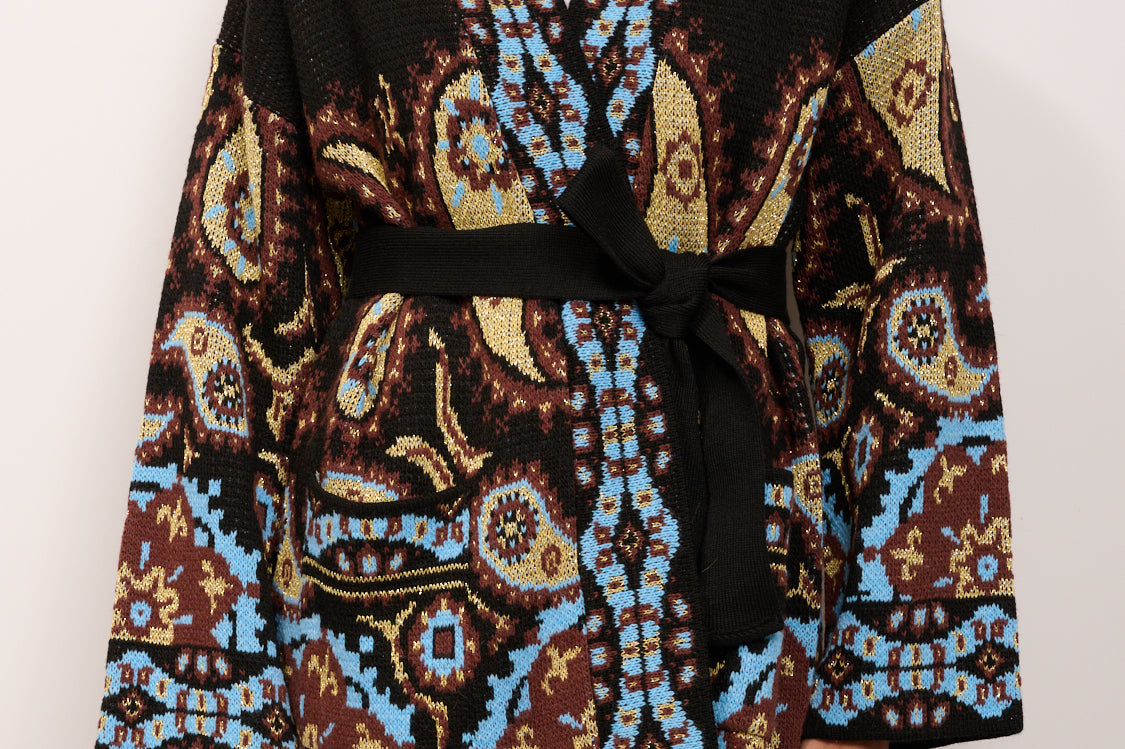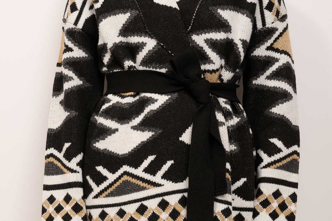 If you choose a long cardigan as your main piece, wear it over a blouse and slim-fit trousers. Add a belt at the waist to define the figure and tall boots for a touch of glamour.