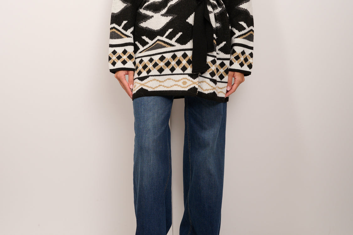 - Belt at the waist: cinch a long sweater with a thin belt to define the silhouette and pair it with a skirt or elegant trousers.