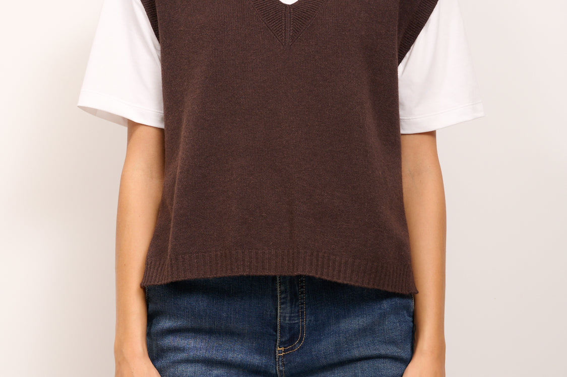 Neutral colored turtlenecks or crewnecks are practical but suitable for a professional context in a classic style. The V-neck is also suitable for those who want a more “bold” look.