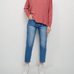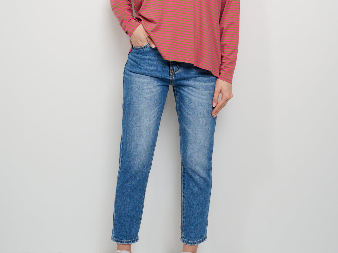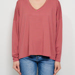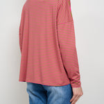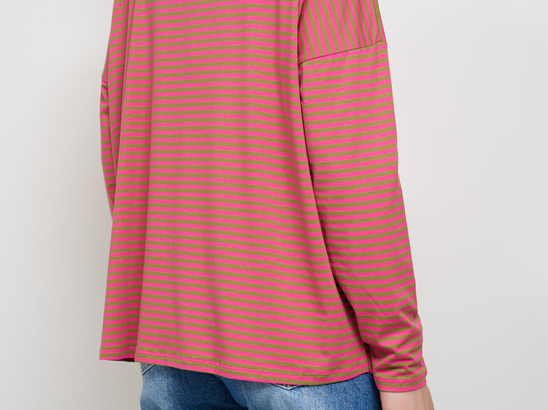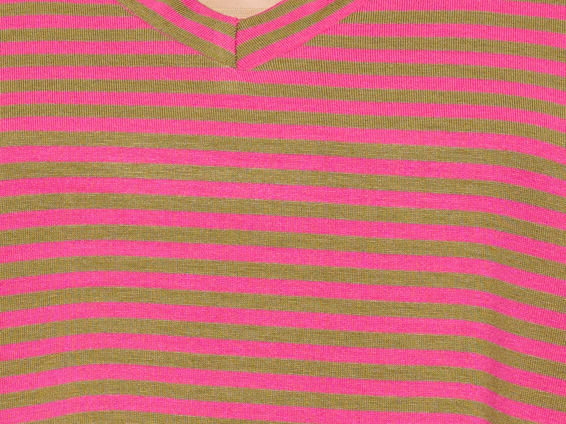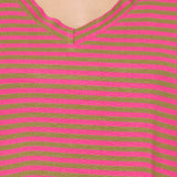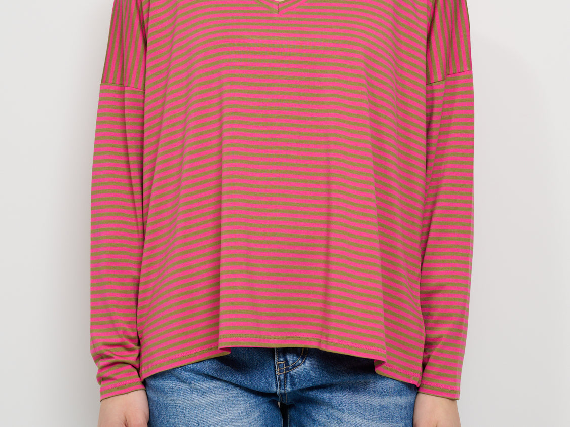 IDENTITY - STRIPED V-NECK SWEATER - FUCHSIA/GREEN