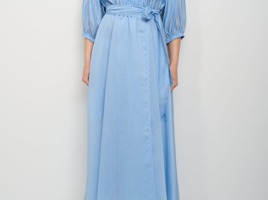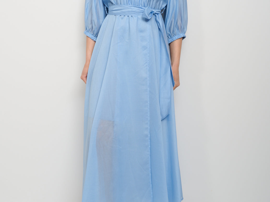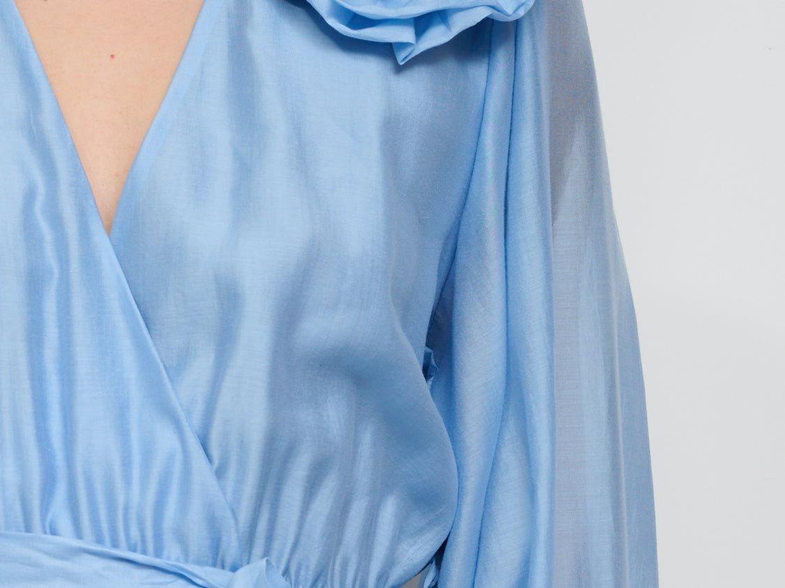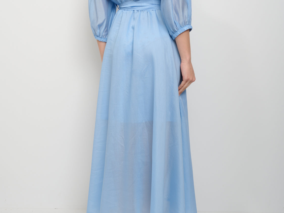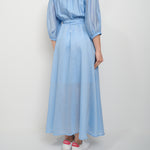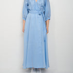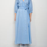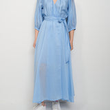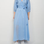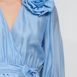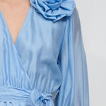 TENSION IN - LONG V-NECK FLOWER DRESS - LIGHT BLUE