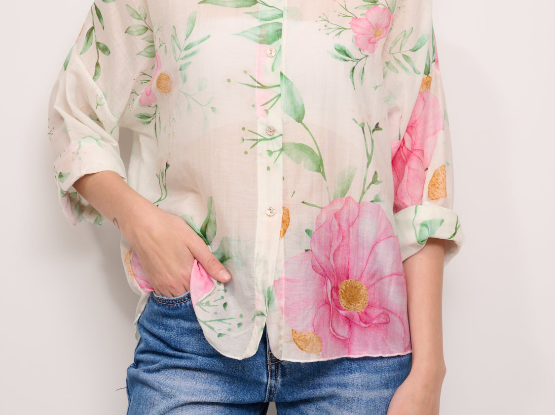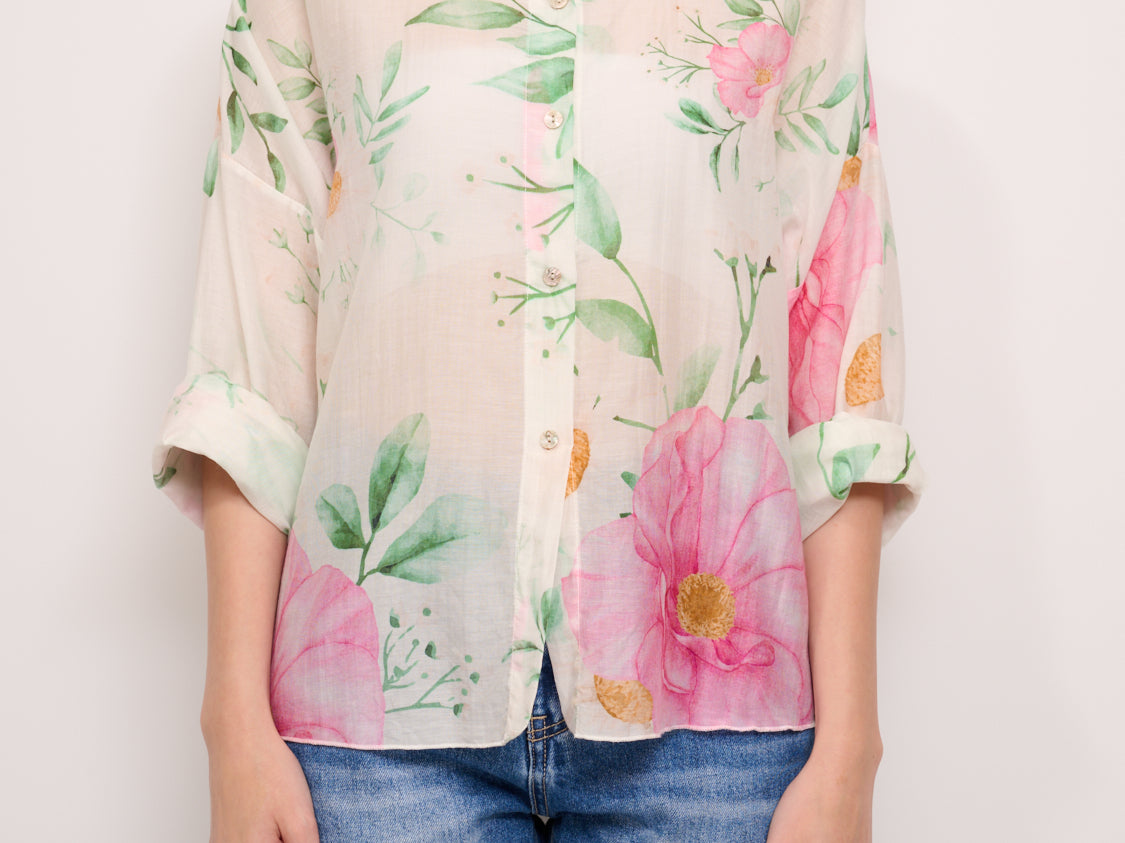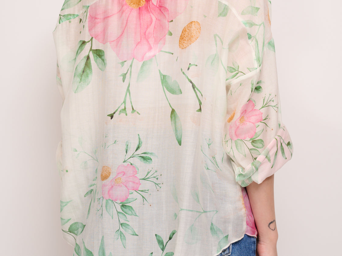 IDENTITY - KNOT SHIRT - WHITE/PINK/GREEN FLOWER