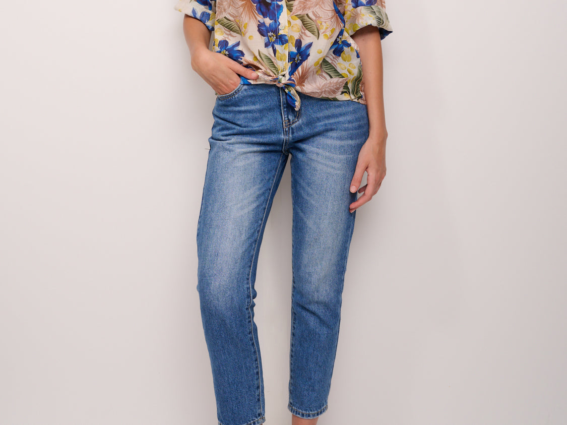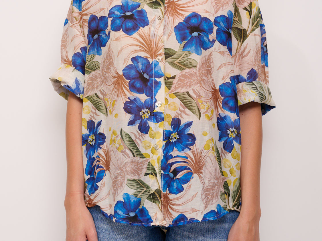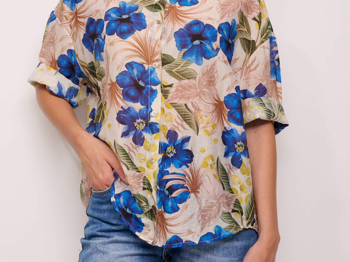 IDENTITY - KNOT SHIRT - BLUEETTE/YELLOW FLOWER
