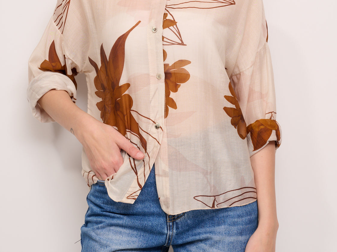 IDENTITY - KNOT SHIRT - CREAM/TOBACCO FLOWER