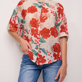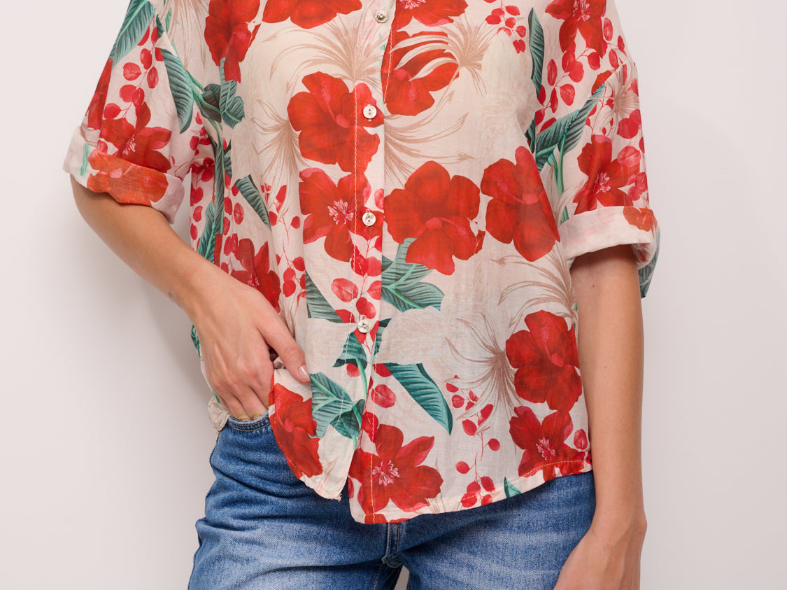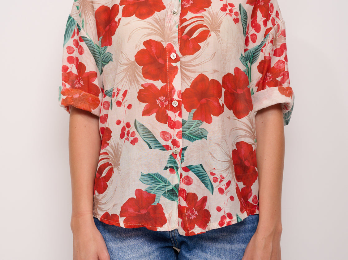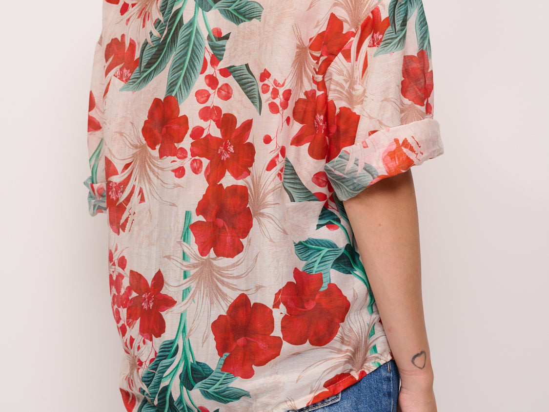 IDENTITY - KNOT SHIRT - SAGE/RED FLOWER