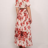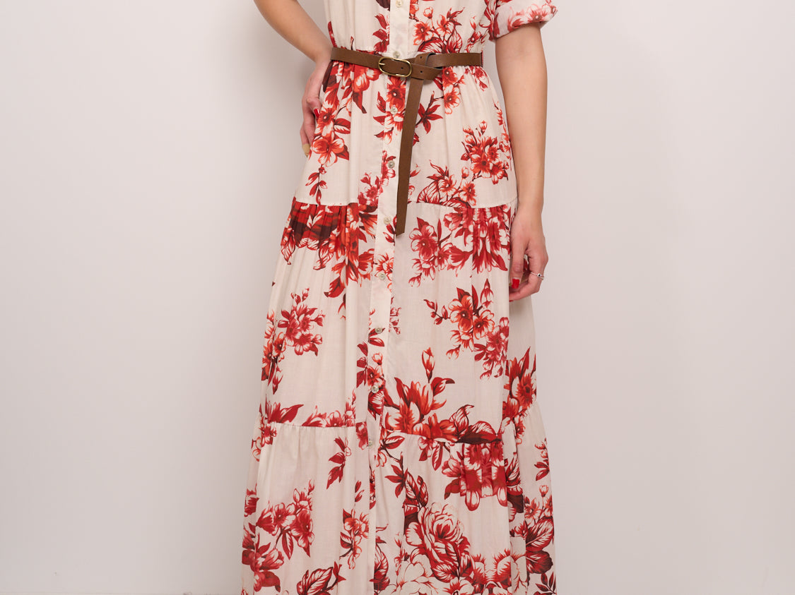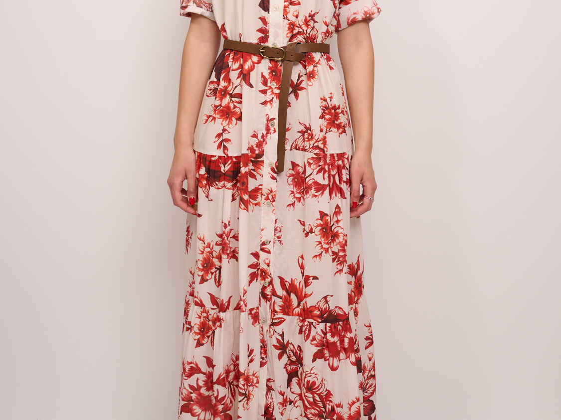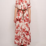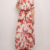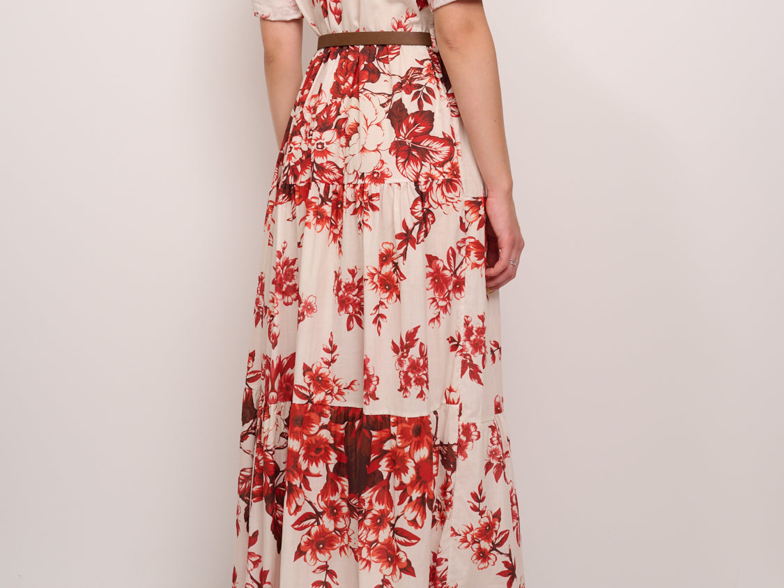 IDENTITY - LONG PATTERNED DRESS - CREAM/RED