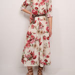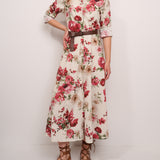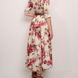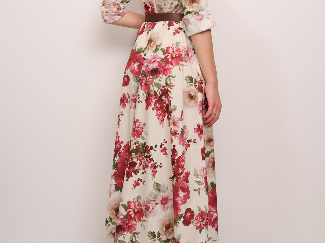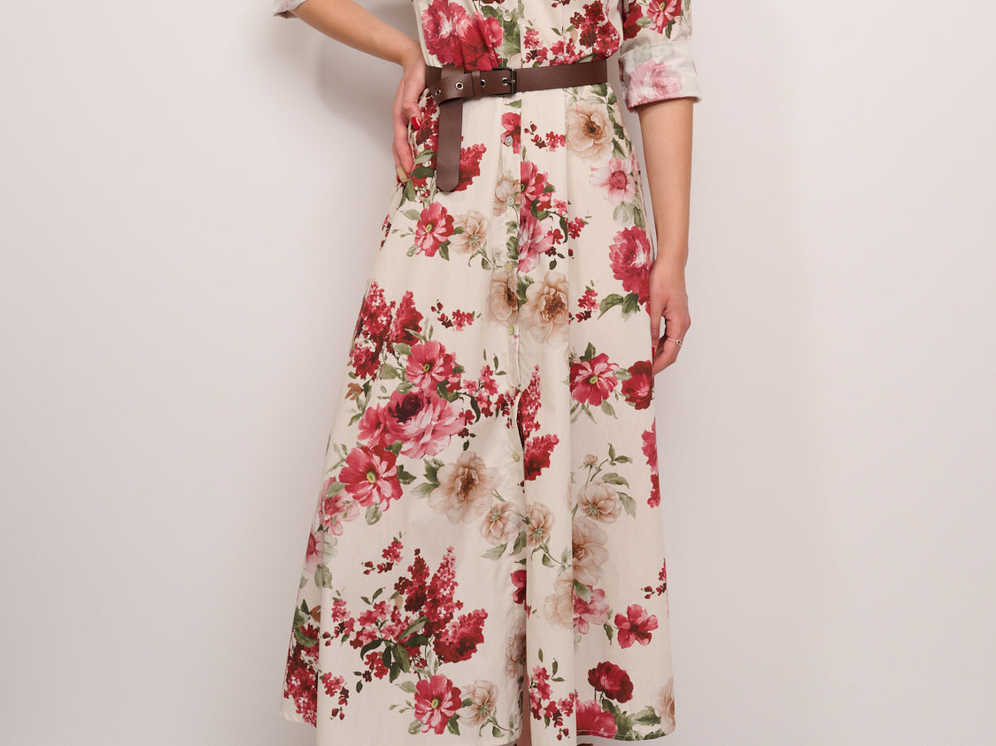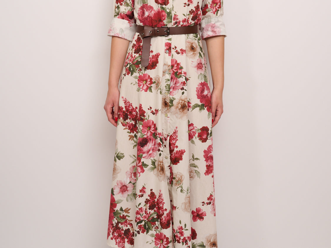 IDENTITY - LONG DRESS WITH FANTASY - BORDEAUX FLOWER