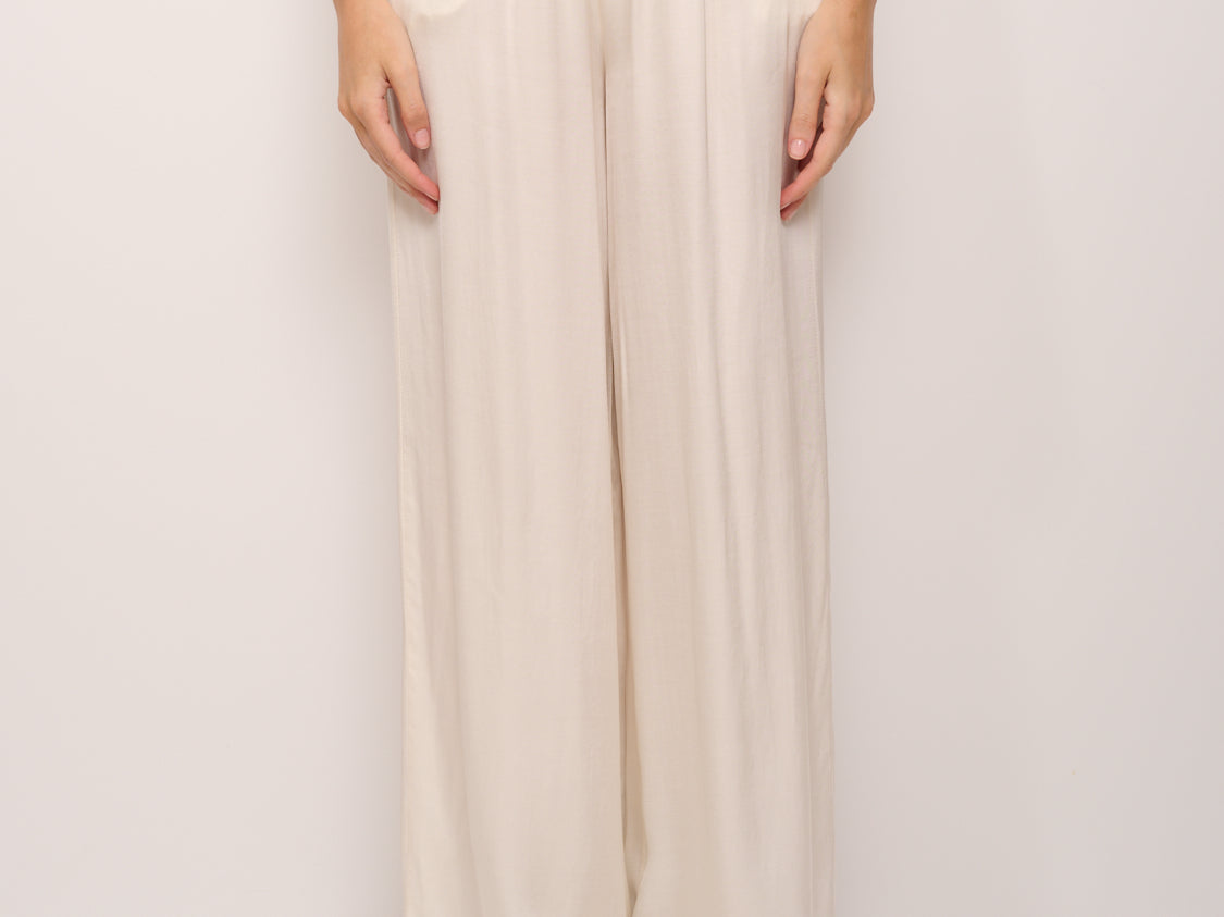 TENSION IN - ELASTIC SATIN PANTS - BUTTER