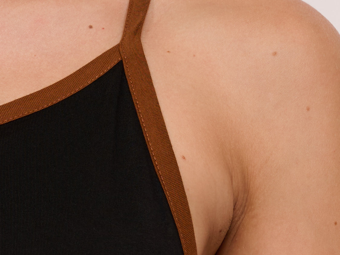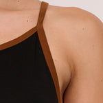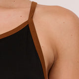 TENSION IN - DRESS WITH CONTRAST EDGE - BLACK/CARAMEL