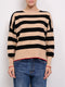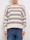 TENSION IN - CREW NECK SWEATER WITH LARGE STRIPE - GREY/CREAM/RED
