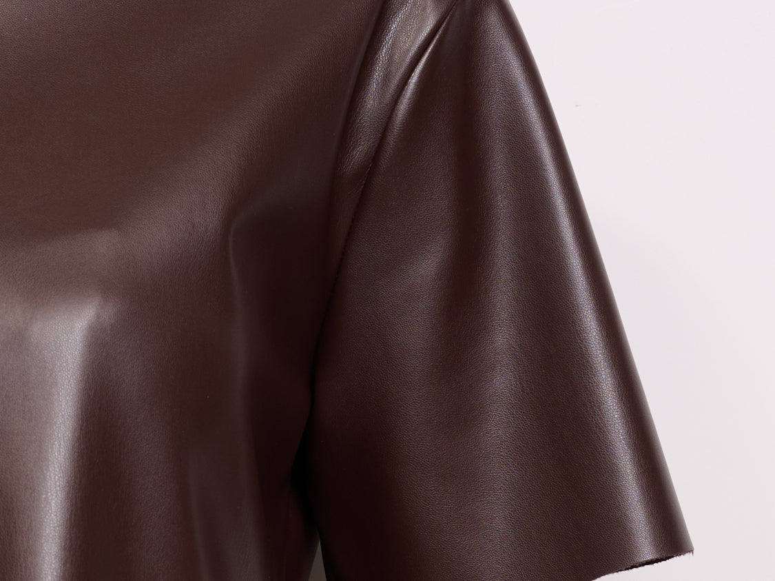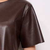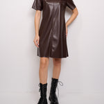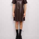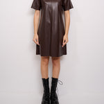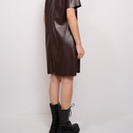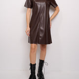 TENSION IN - ECO-LEATHER SLEEVE DRESS - DARK BROWN