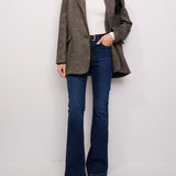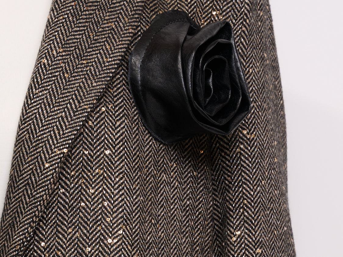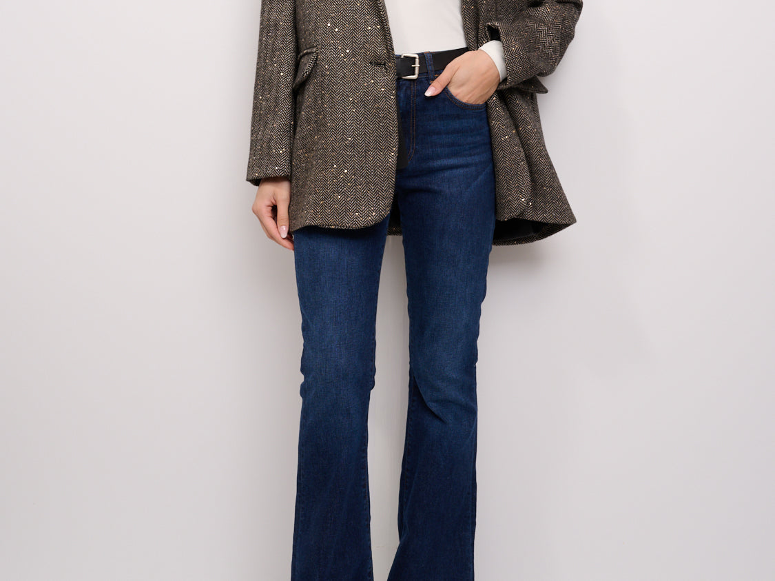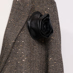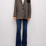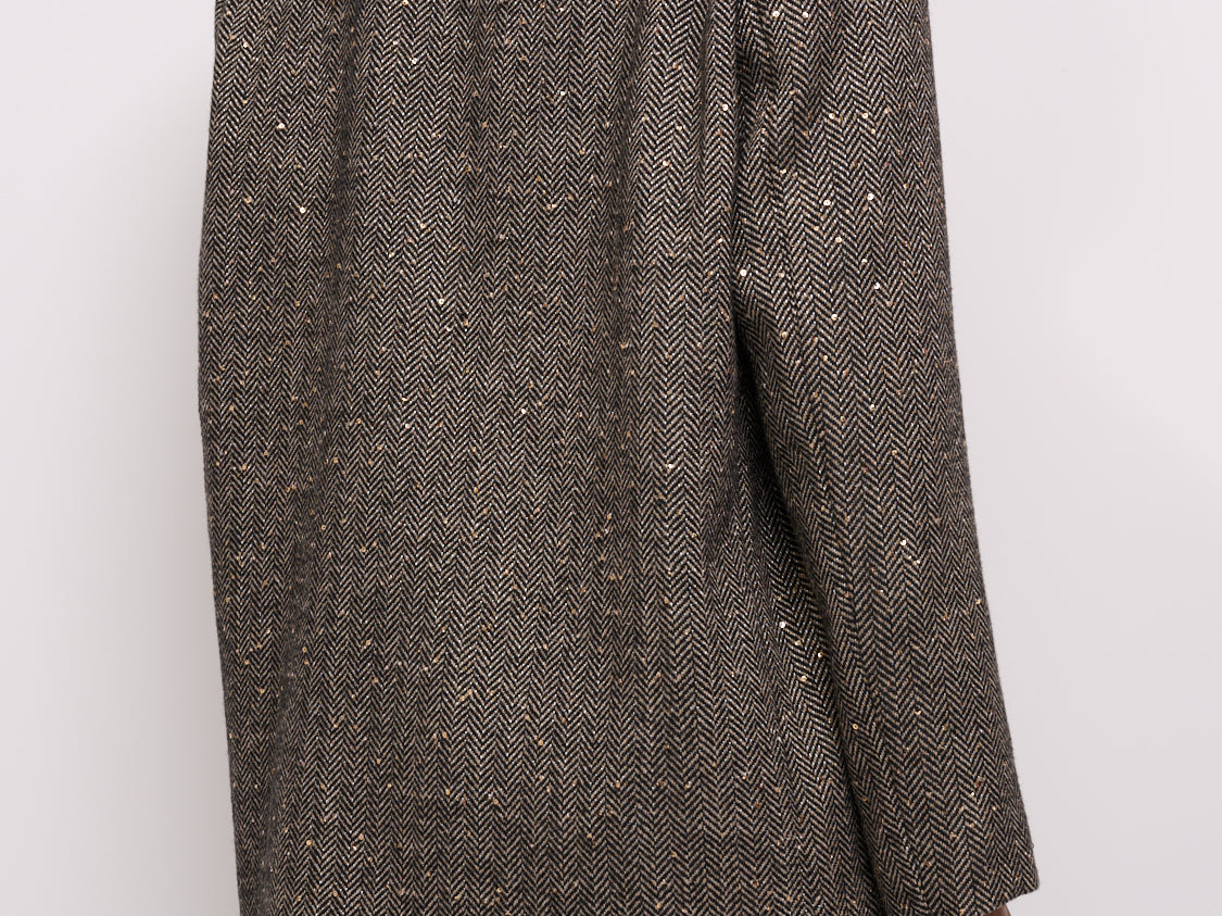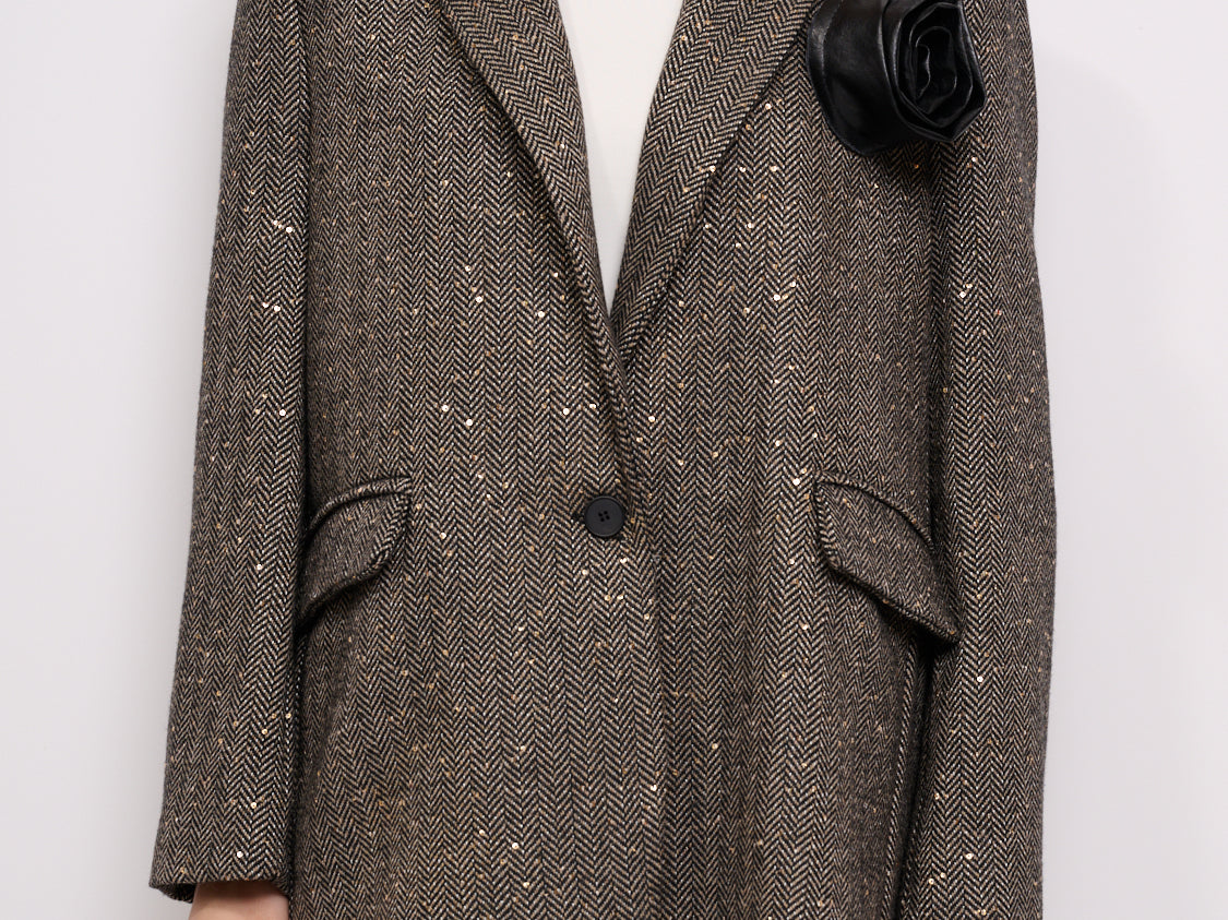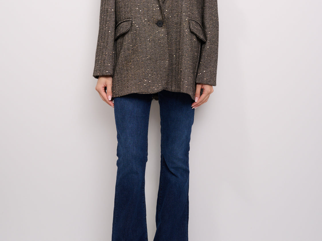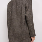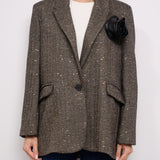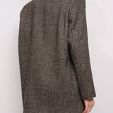 TENSION IN - OVERSIZED HERRINGBONE JACKET WITH MICRO PAILLETTES - DARK BROWN