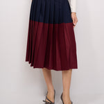 TENSION IN - PLEATED SKIRT - BLUE/BORDEAUX