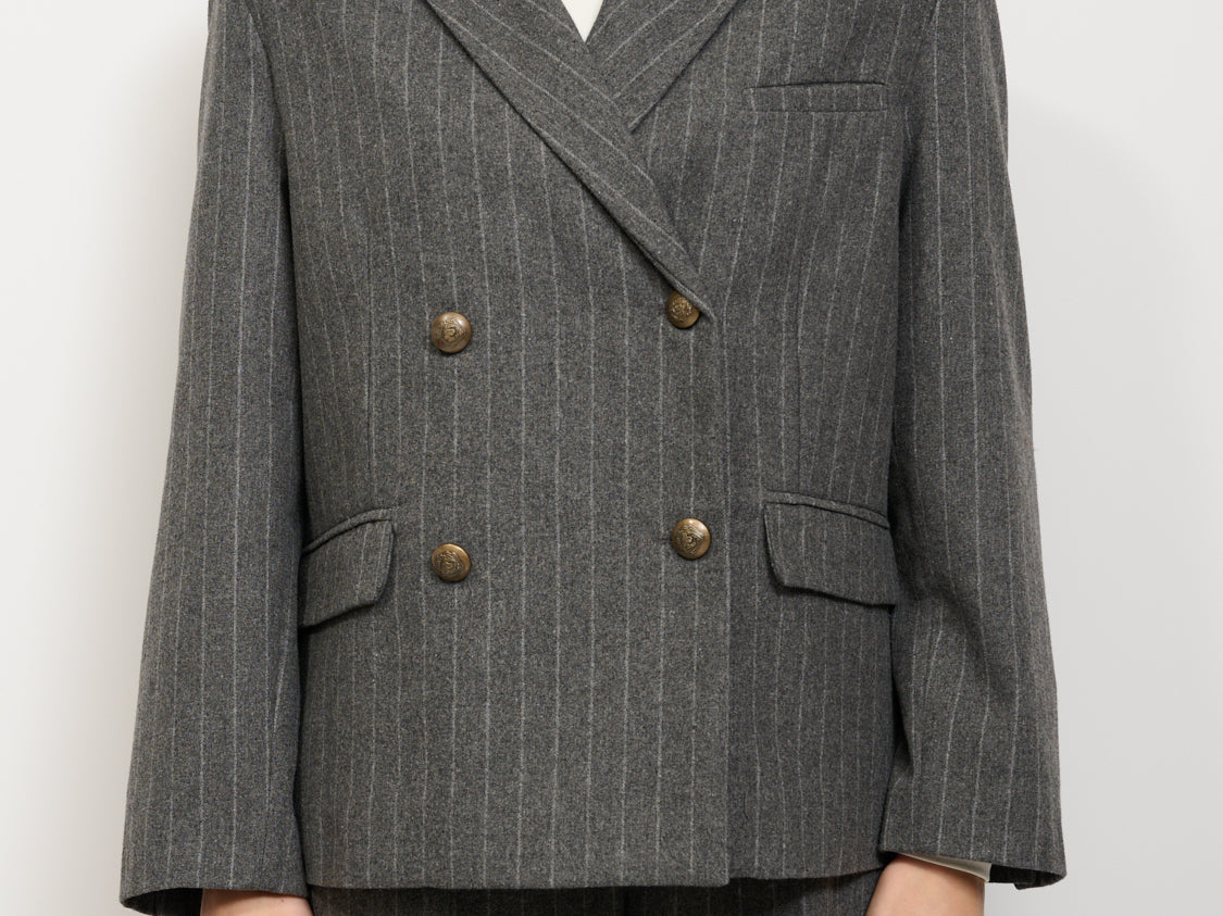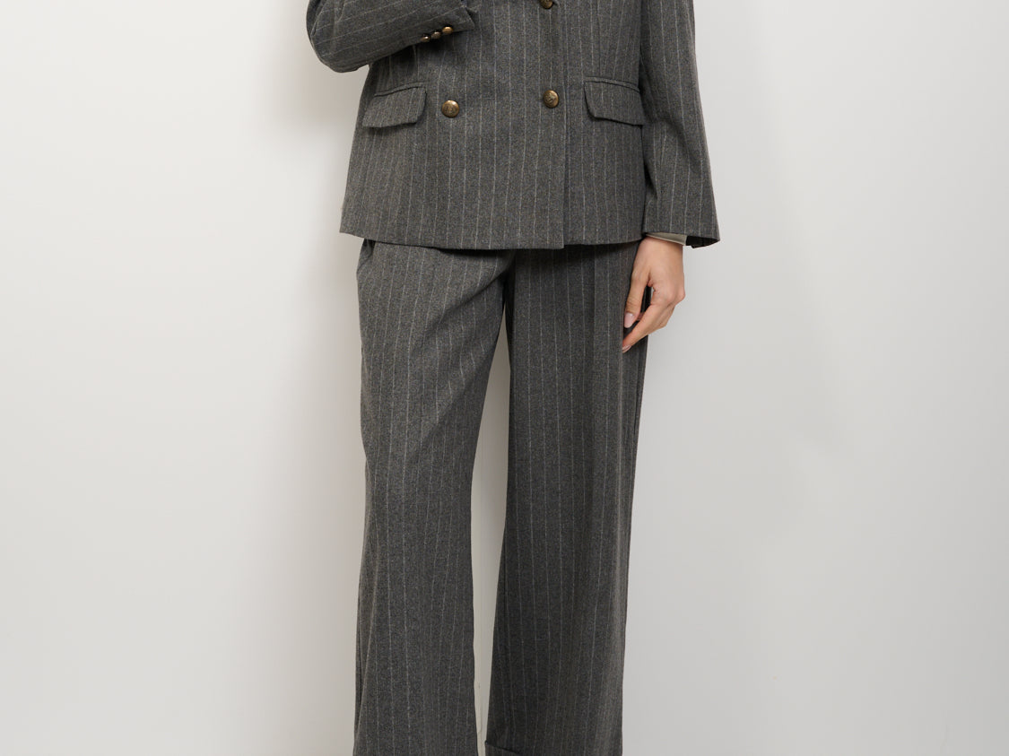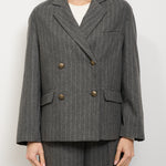 TENSION IN - OVERSIZED DOUBLE BREASTED PINSTRIPE JACKET - GREY
