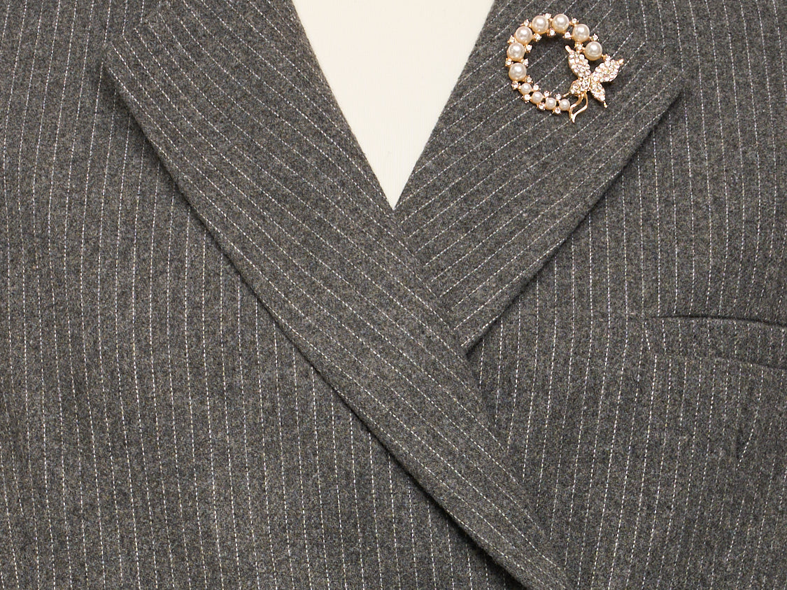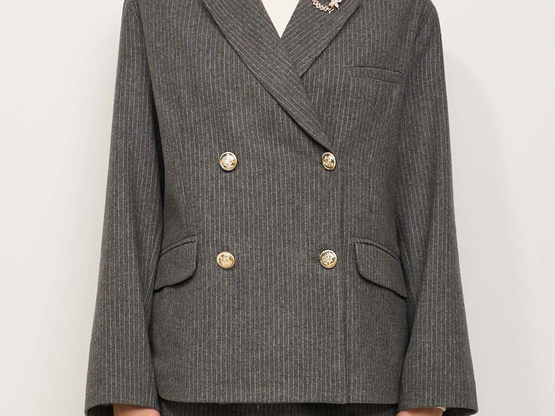 TENSION IN - DOUBLE BREASTED PINSTRIPE JACKET - GREY