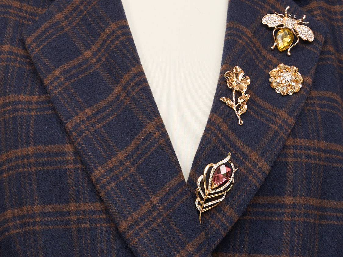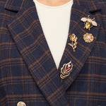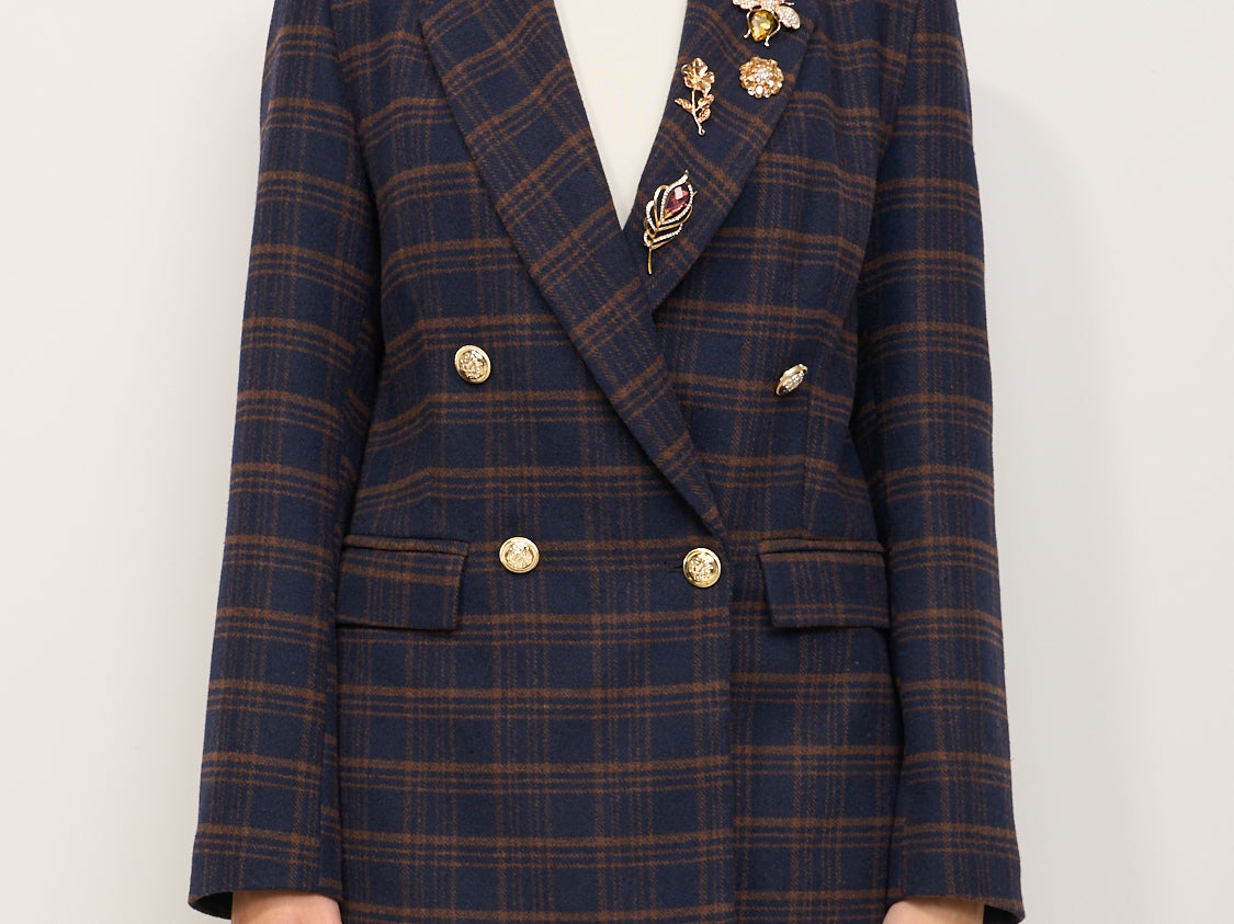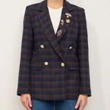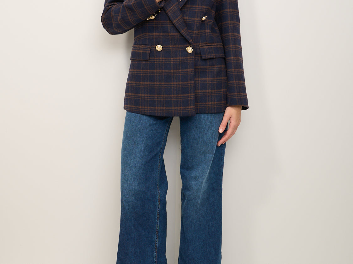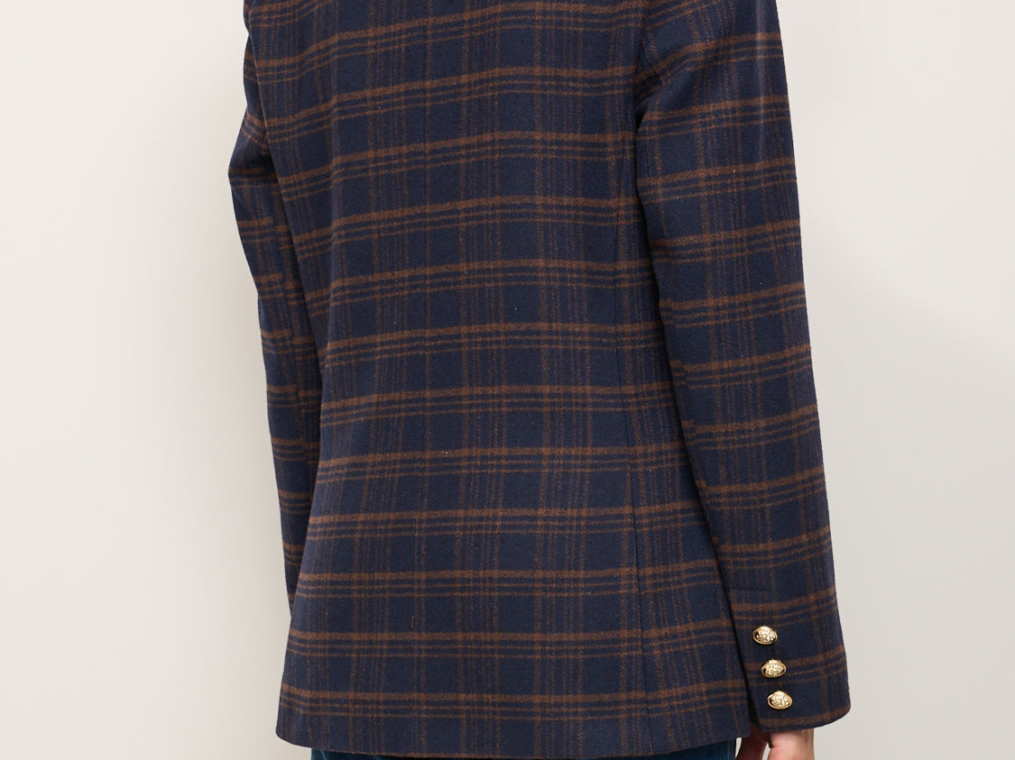 TENSION IN - DOUBLE BREASTED CHECK JACKET - BLUE/CAMEL