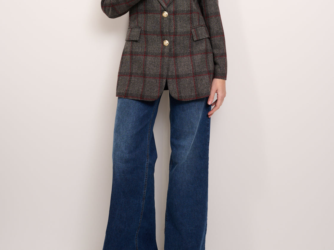 TENSION IN - CHECK 2 BUTTON JACKET - GREY