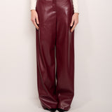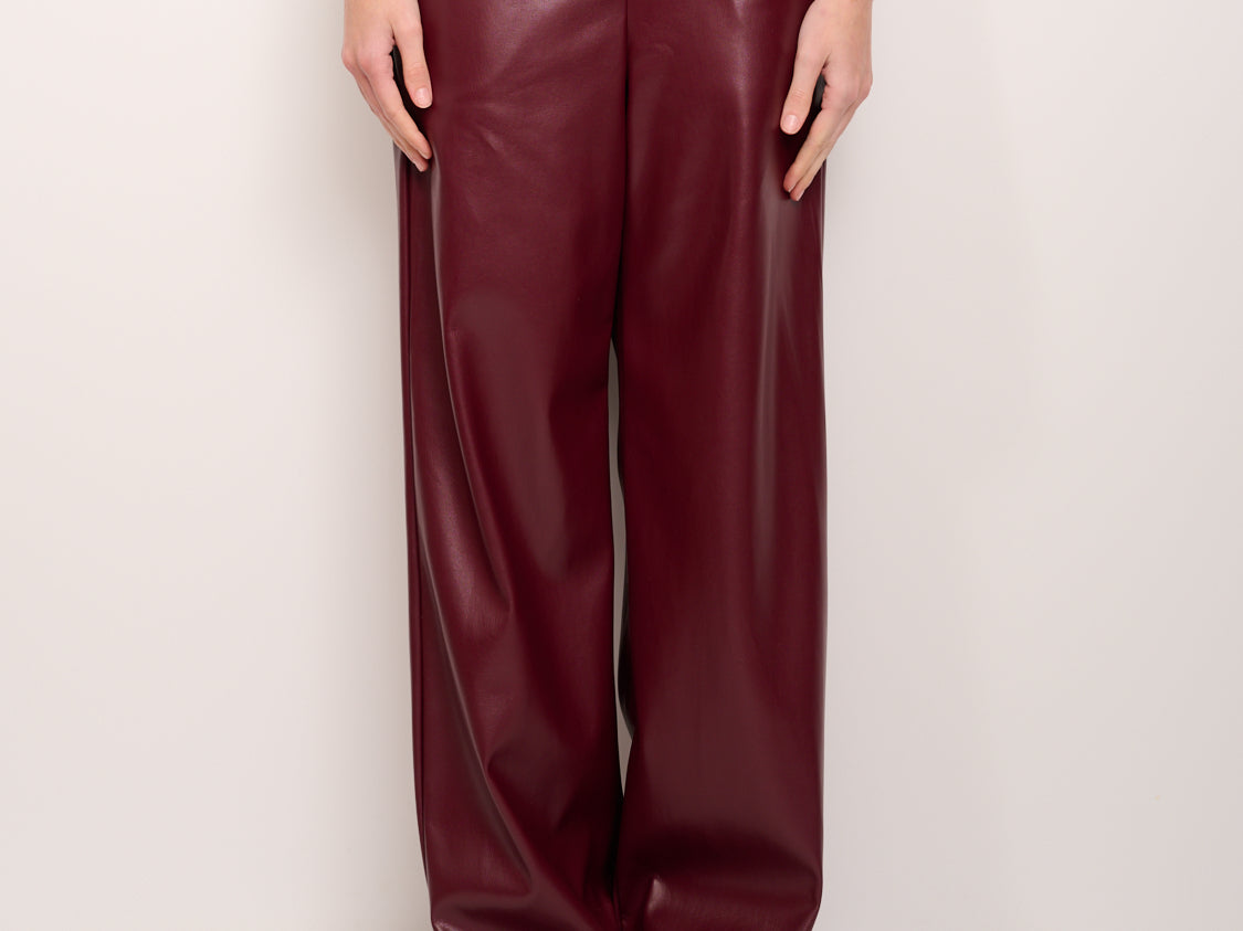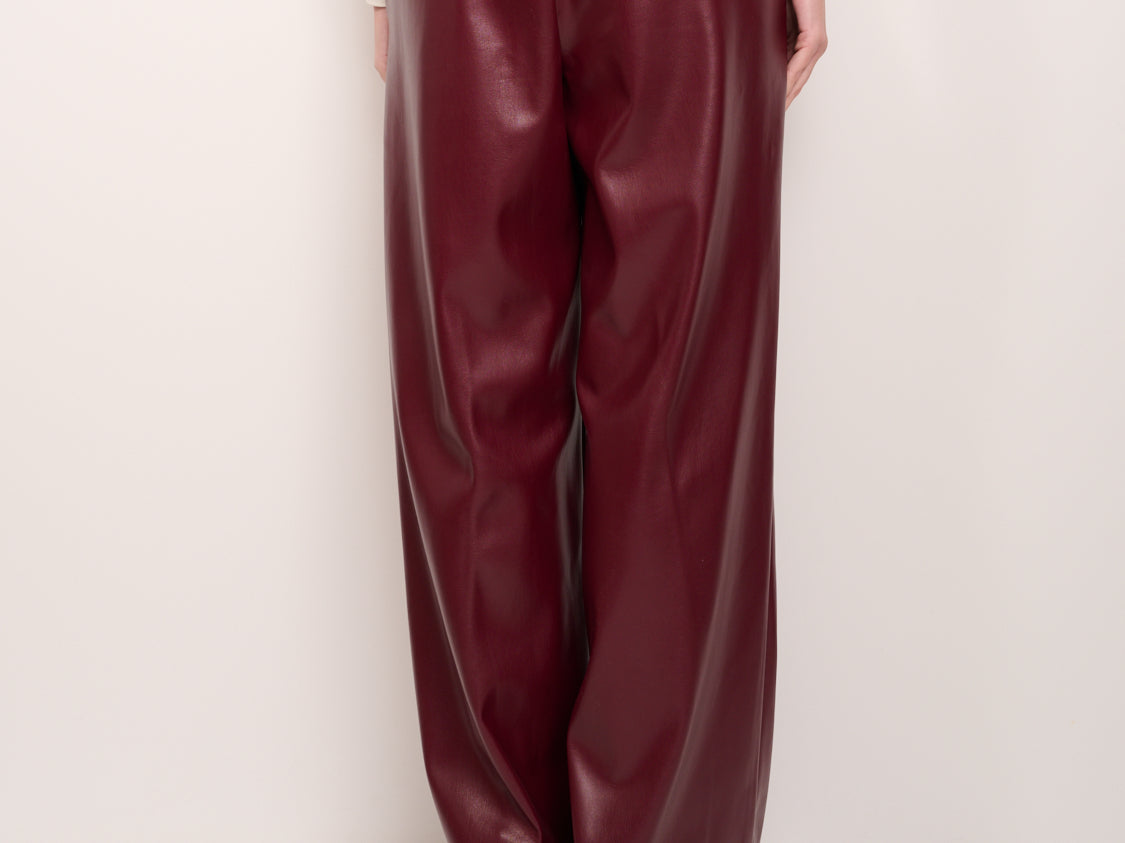 TENSION IN - WIDE ECO-LEATHER TROUSERS - BORDEAUX