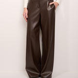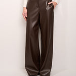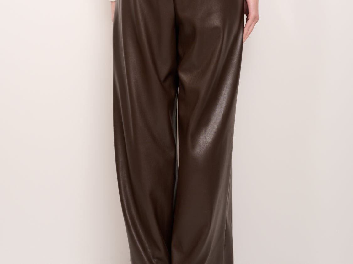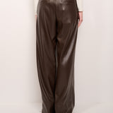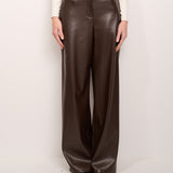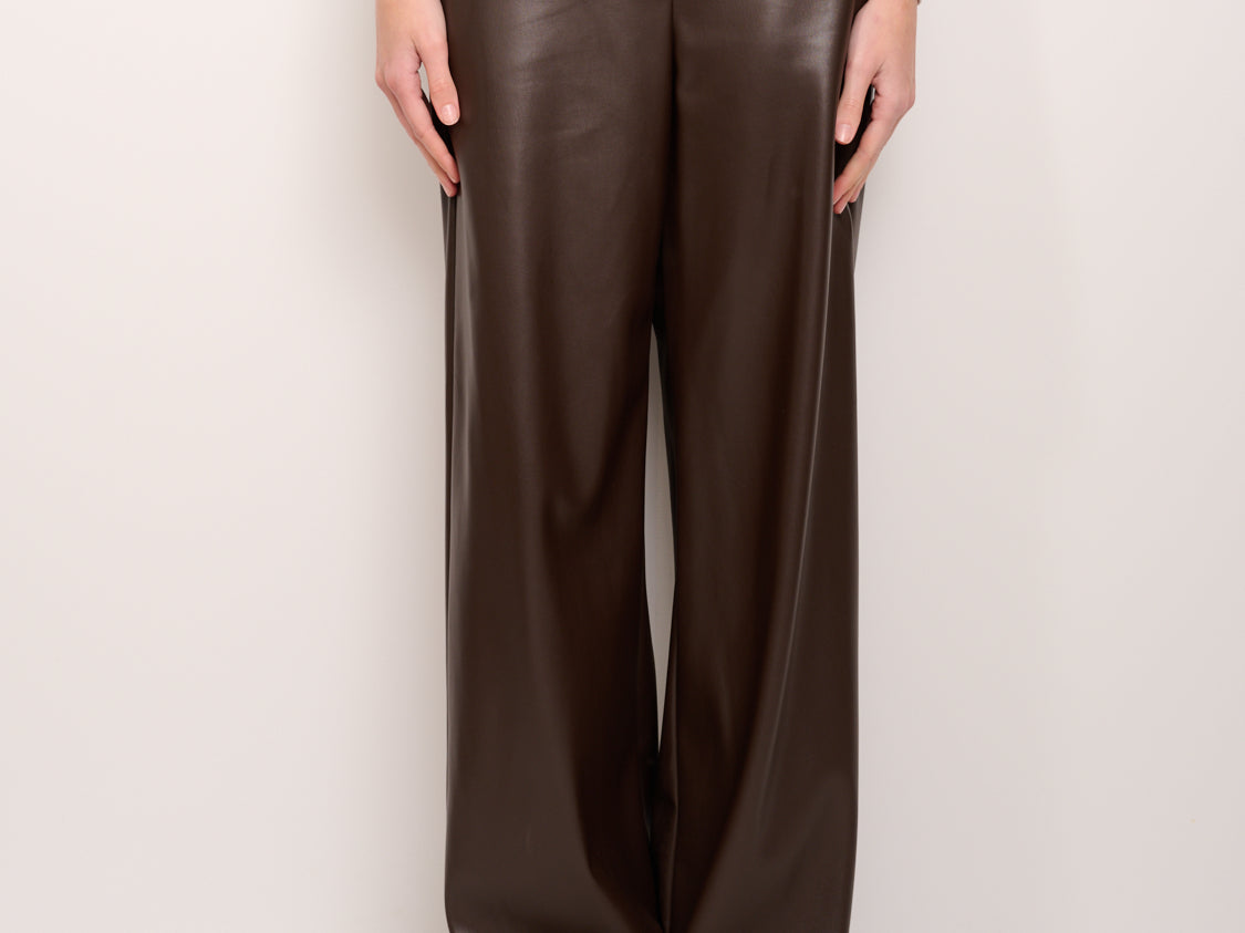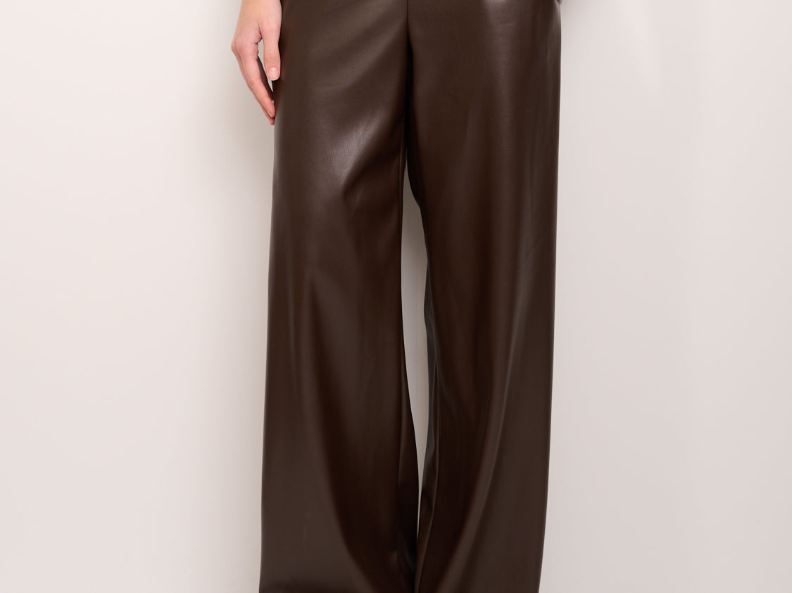 TENSION IN - WIDE ECO-LEATHER TROUSERS - DARK BROWN