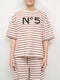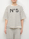 TENSION IN - STRIPED SHORT SLEEVE SWEATER - CREAM/BLUE