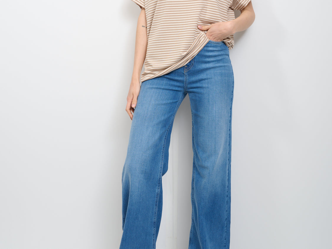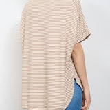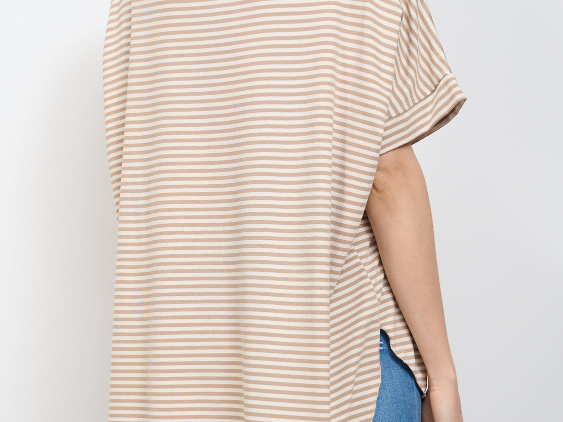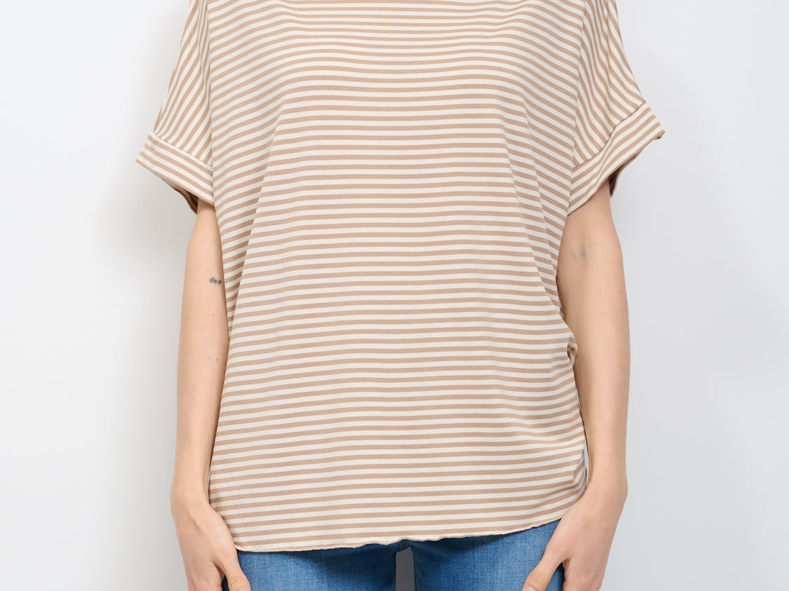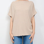 IDENTITY - STRIPED BOAT NECK SWEATER - BEIGE/WHITE