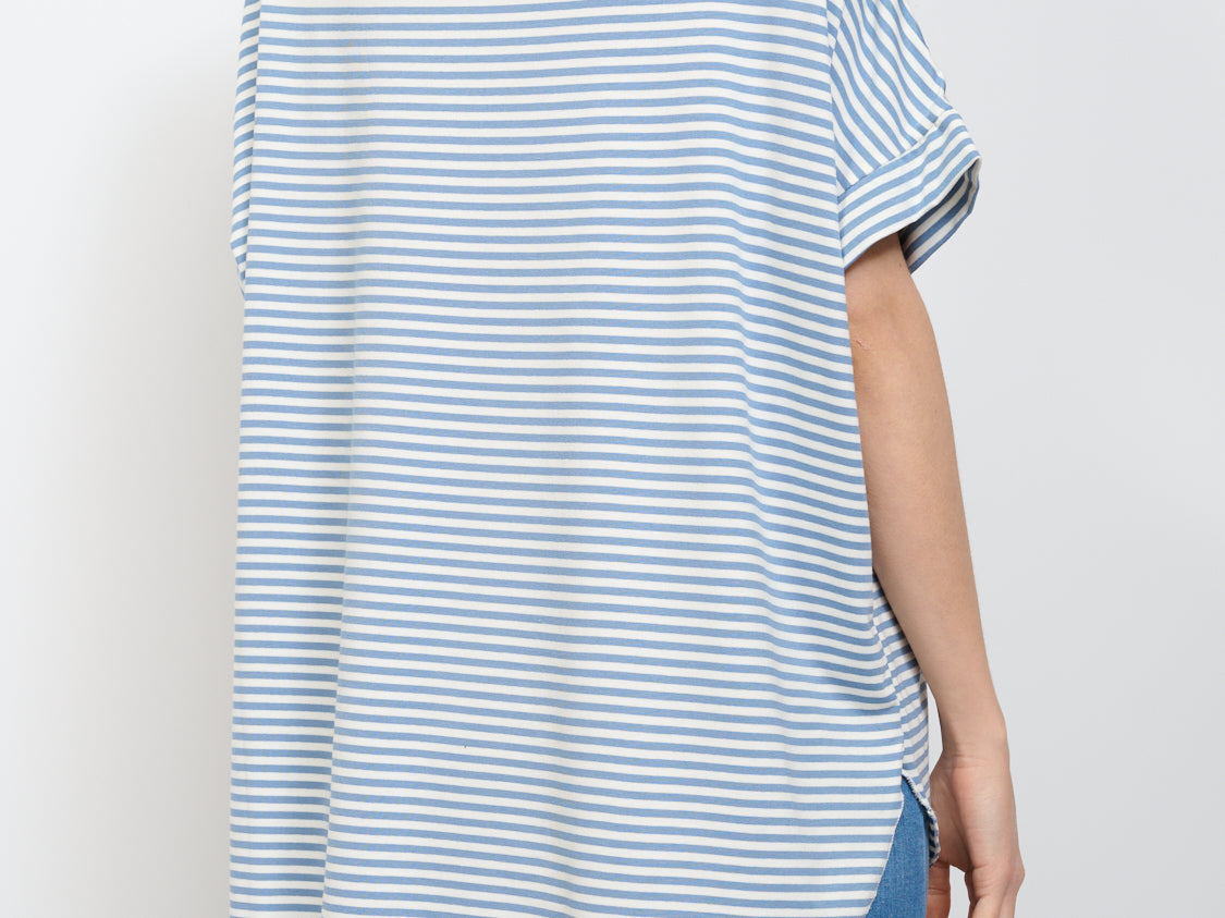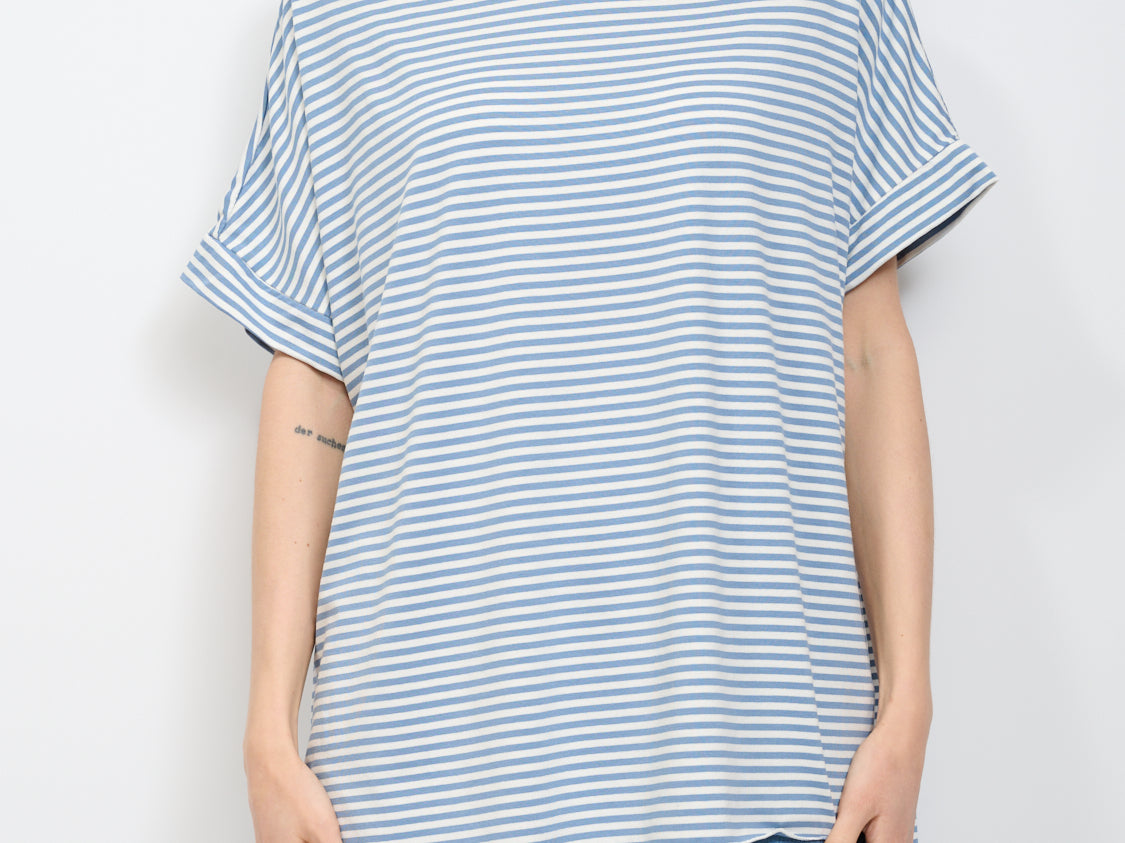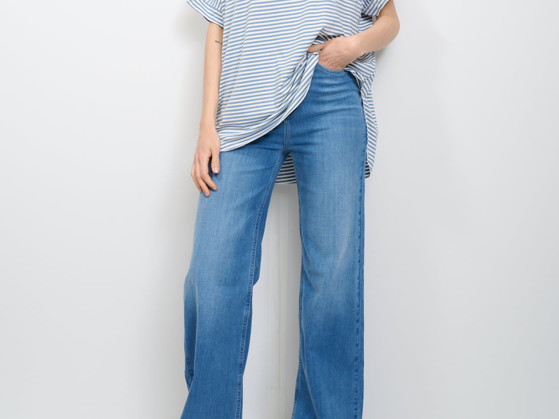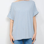 IDENTITY - STRIPED BOAT NECK SWEATER - JEANS/WHITE