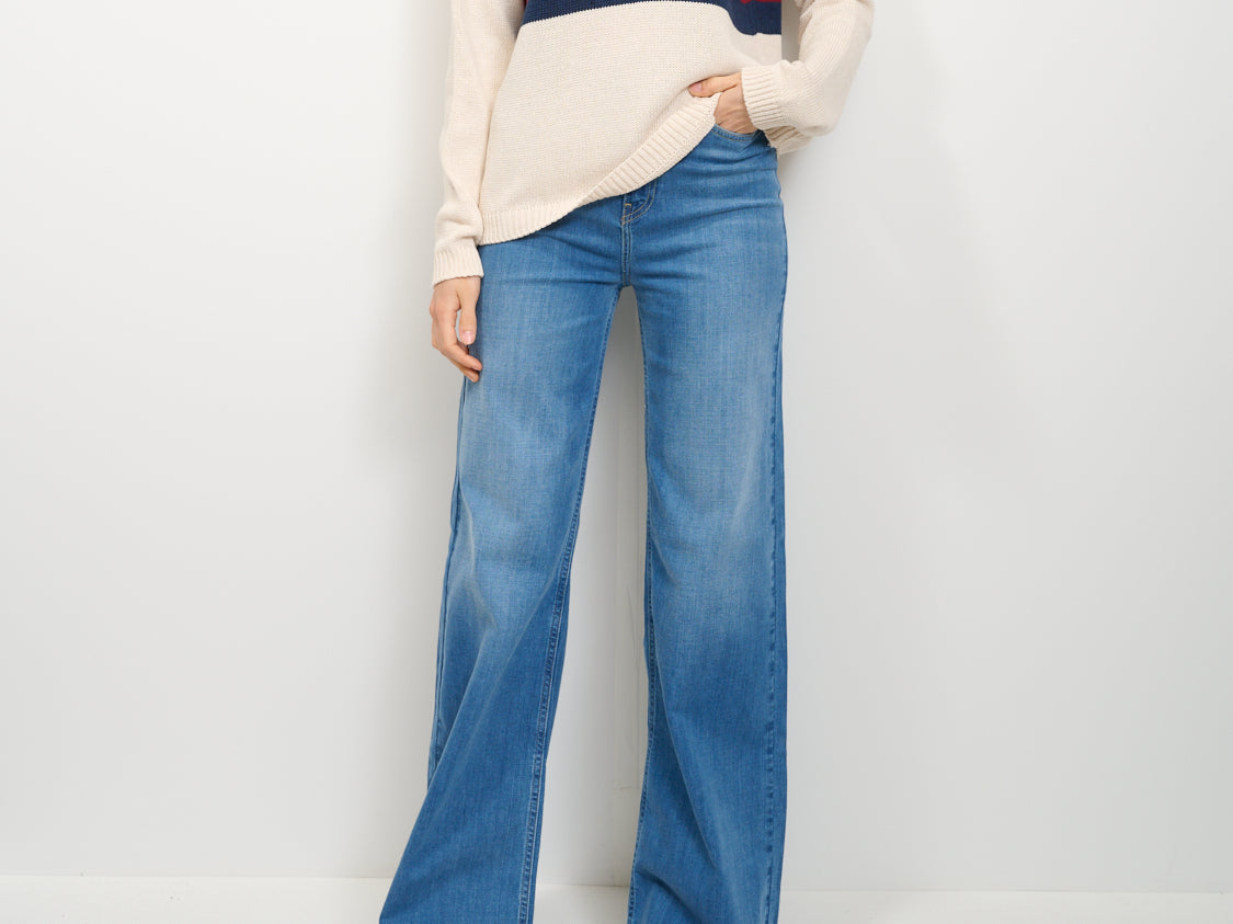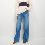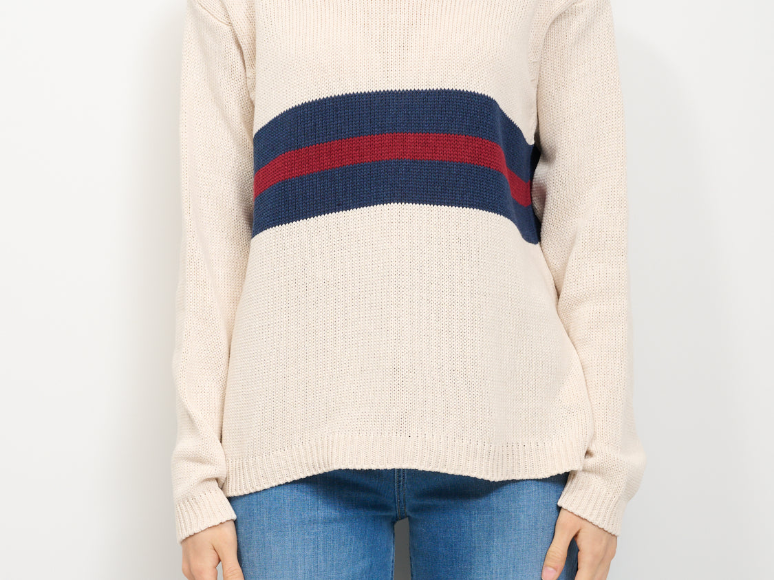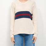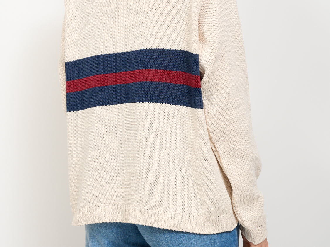 IDENTITY - STRIPED CREW NECK SWEATER - LIME/BLUE/BORDEAUX