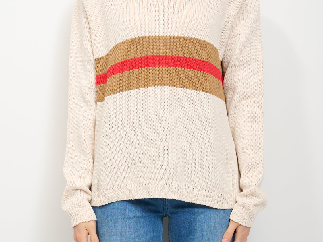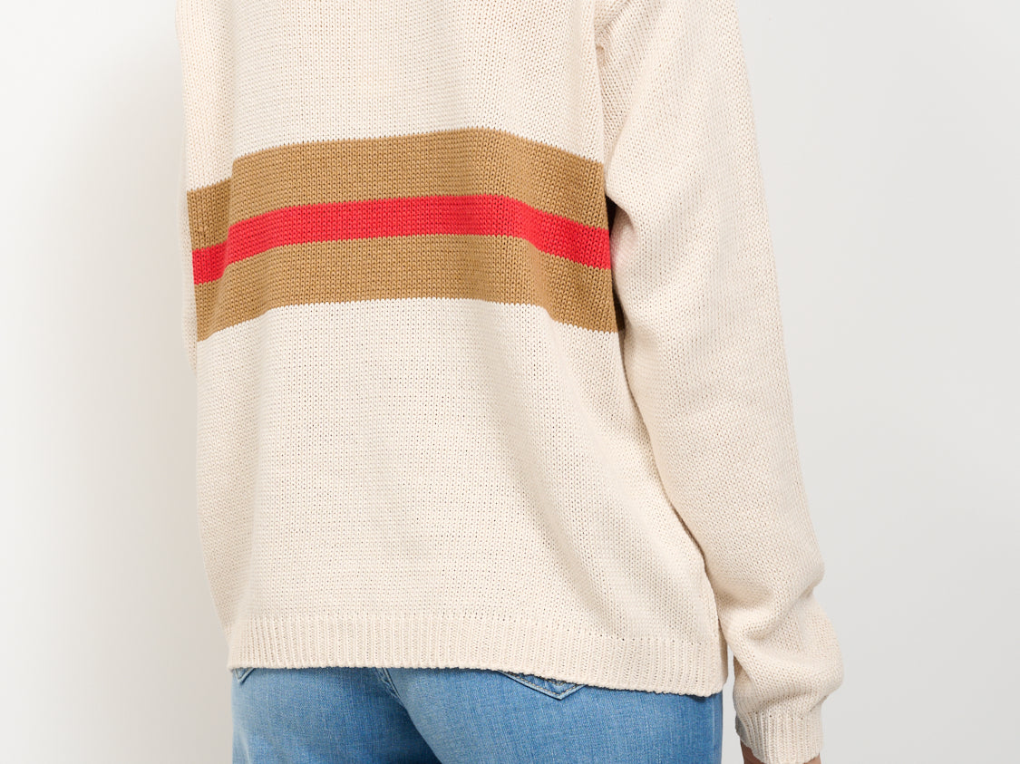 IDENTITY - STRIPED CREW NECK SWEATER - LIME/CAMEL/RED
