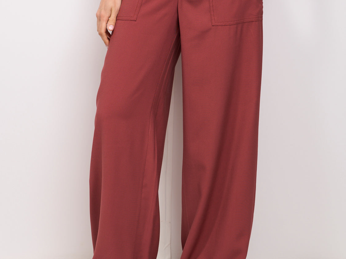 DIXIE - WIDE PANTS WITH PATCH POCKET - BORDEAUX
