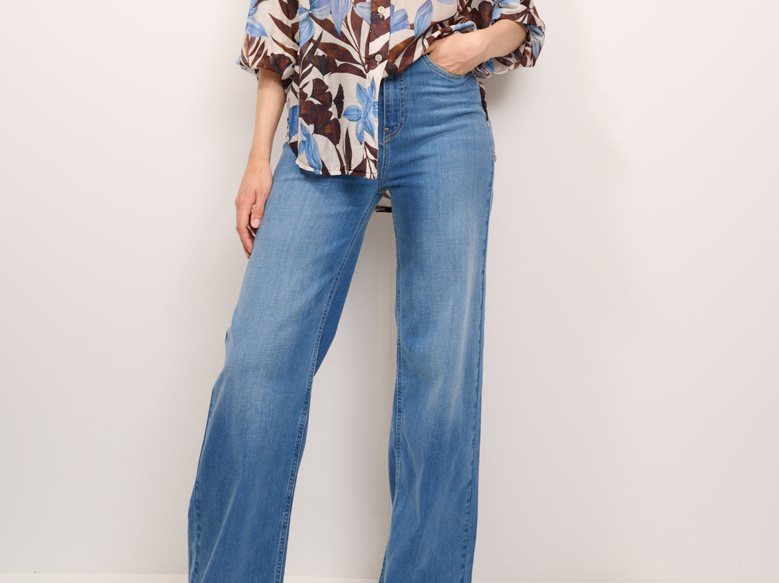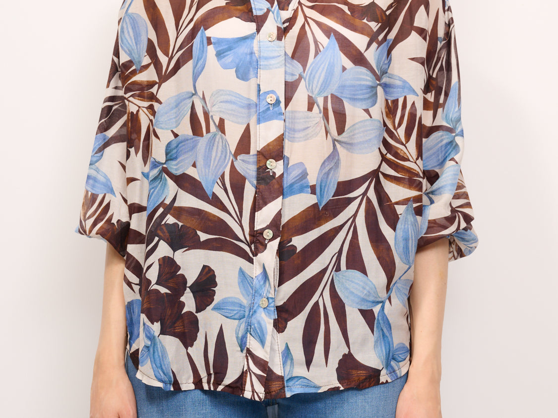 IDENTITY - PATTERNED SHIRT - DARK BROWN/LIGHT BLUE