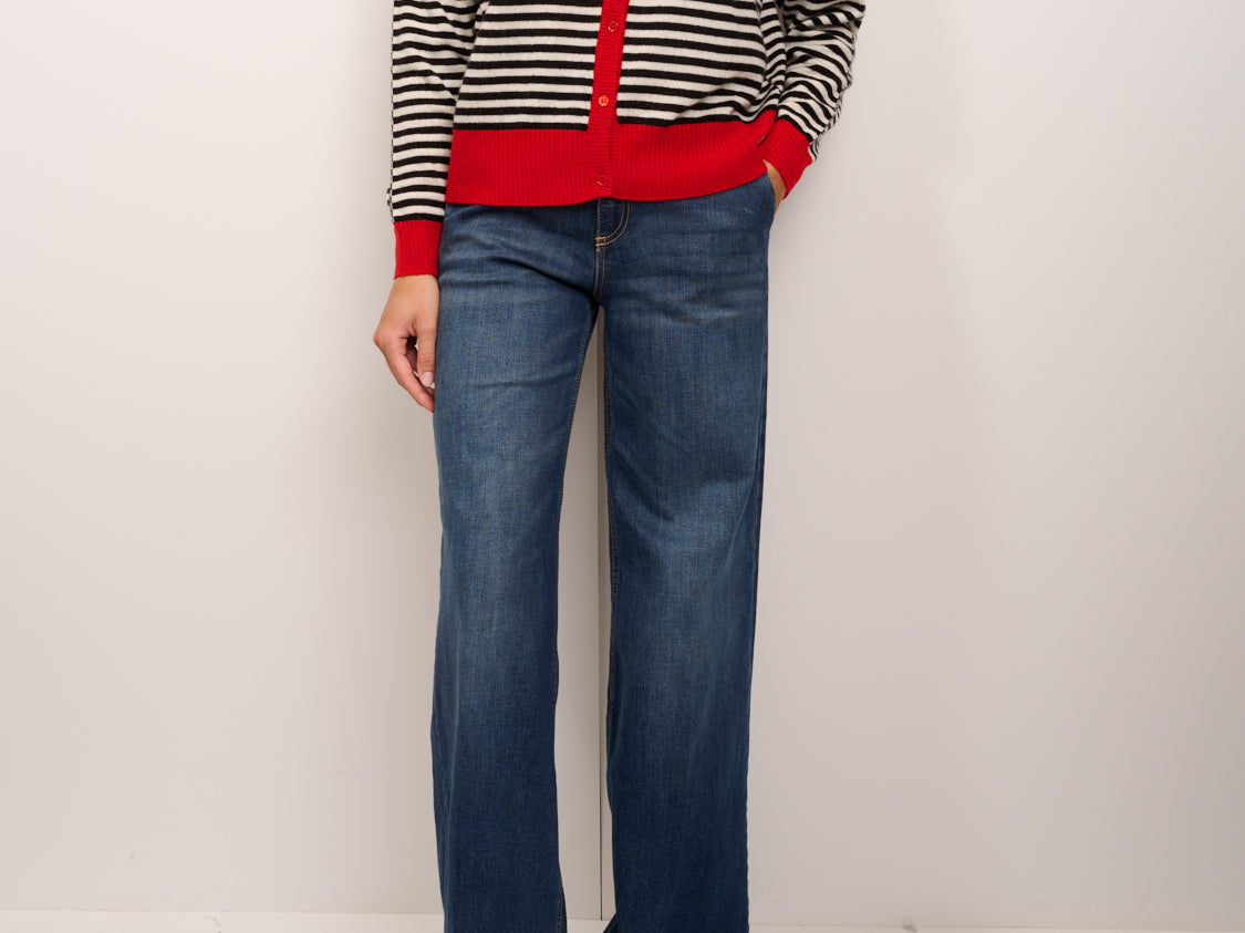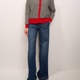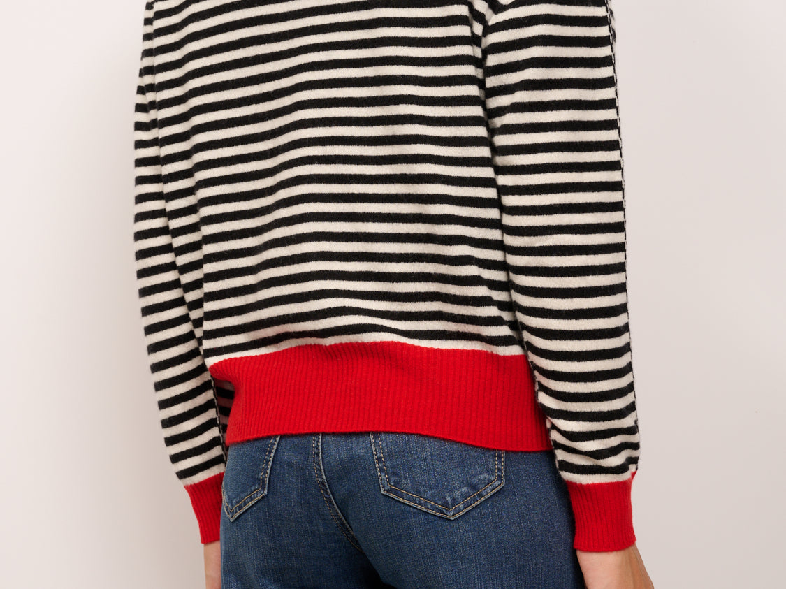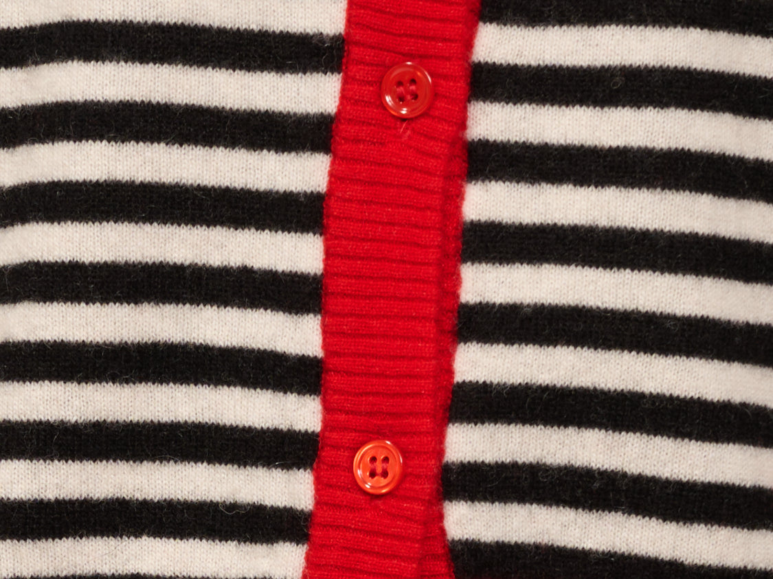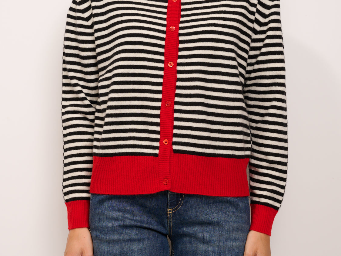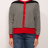 VICOLO - MAGLIA BOTTONI RIGATA GIROCOLLO - NERO/BIANCO/ROSSO