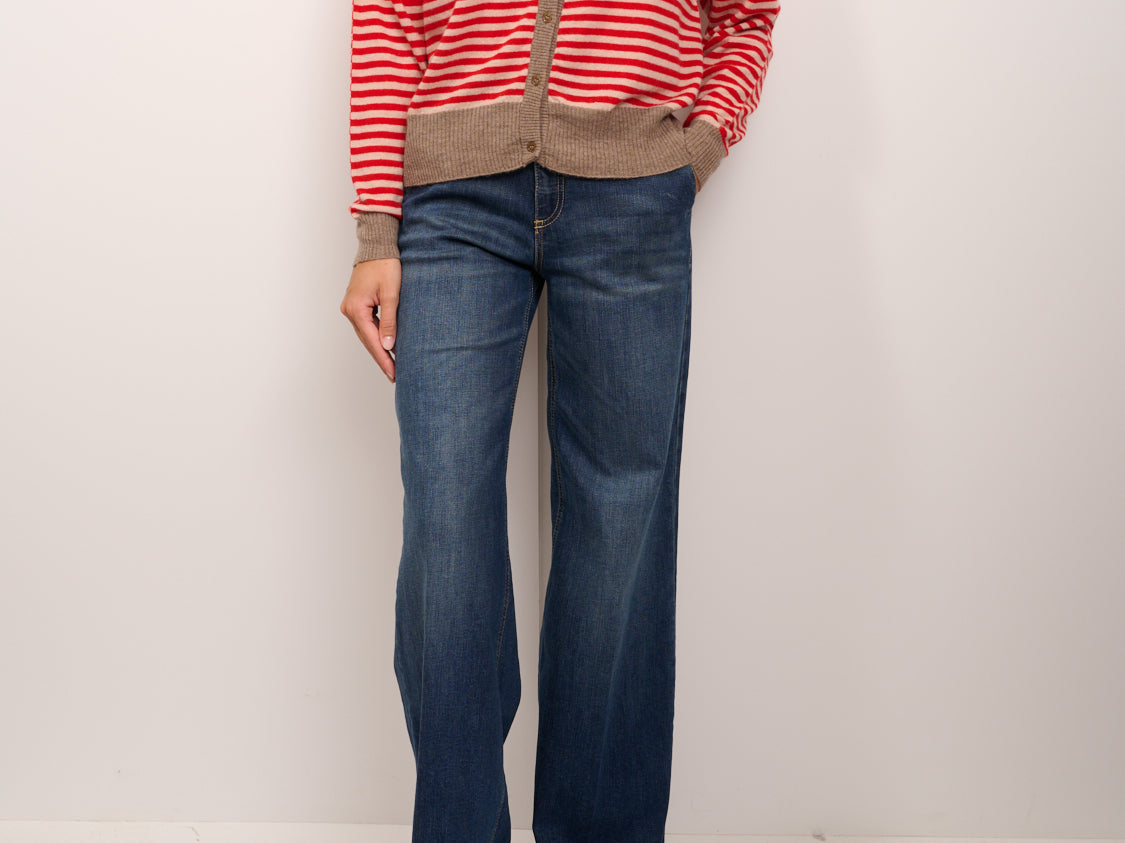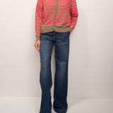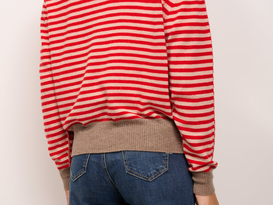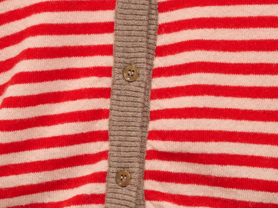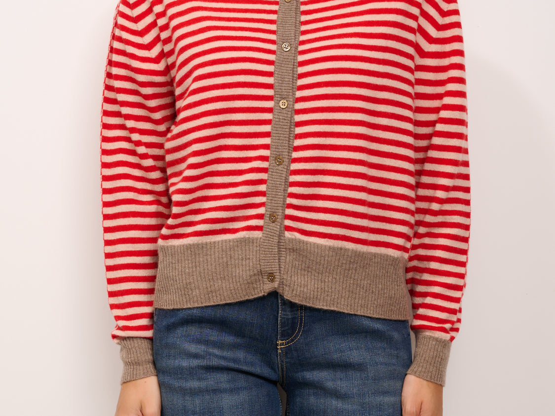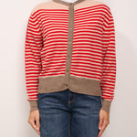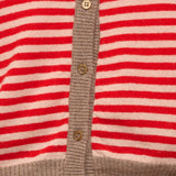 VICOLO - MAGLIA BOTTONI RIGATA GIROCOLLO - ROSA/ROSSO/TORTORA