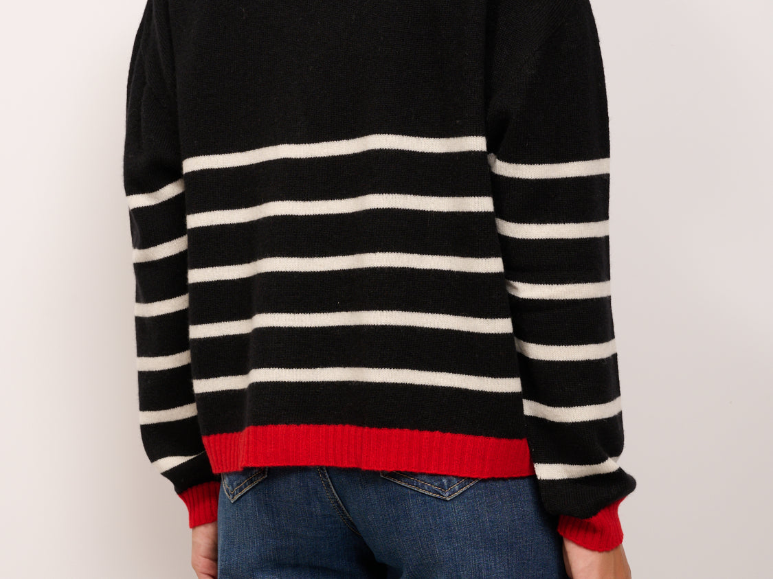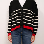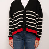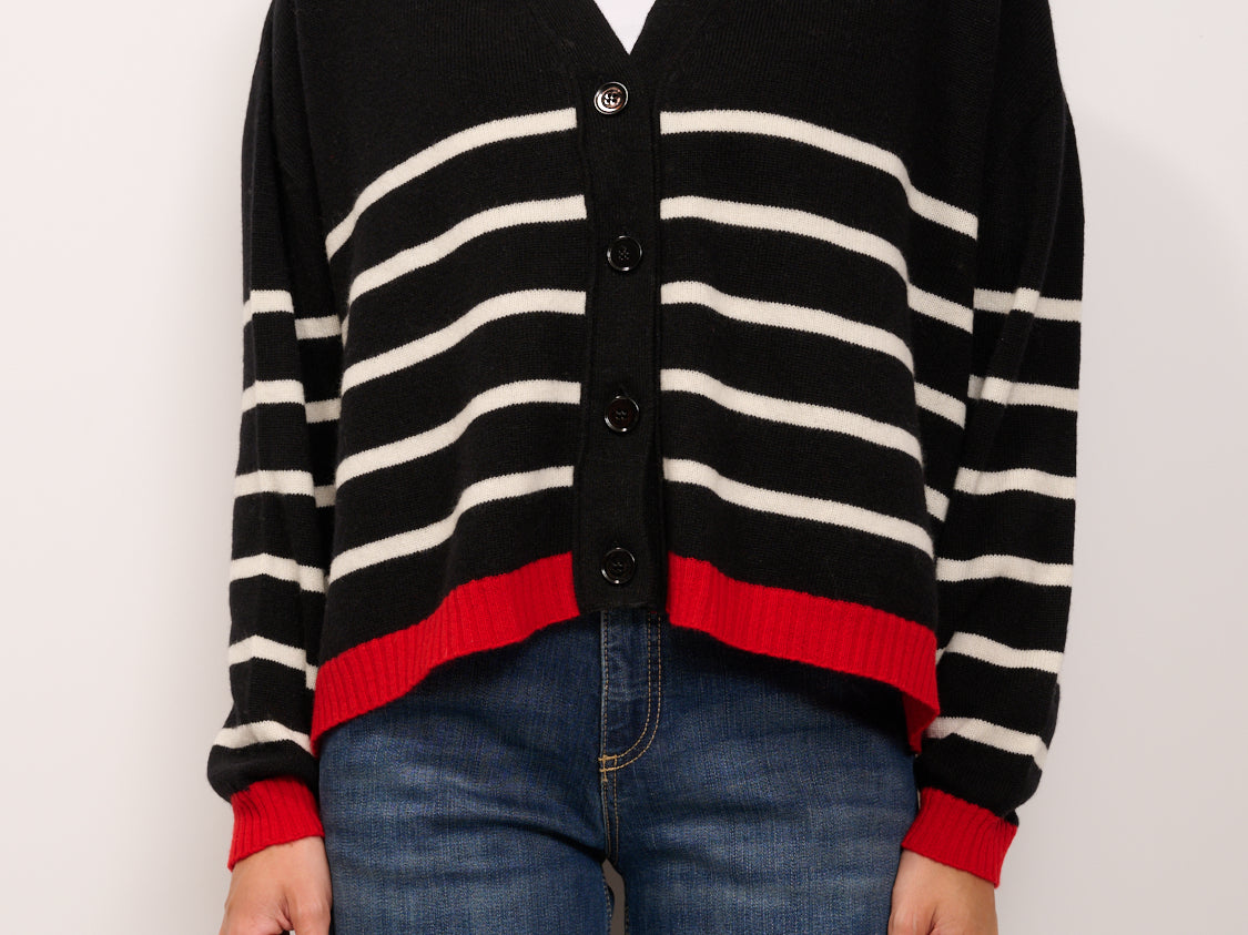 VICOLO - MAGLIA CARDIGAN - NERO/BIANCO/ROSSO