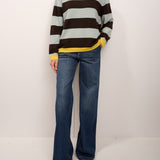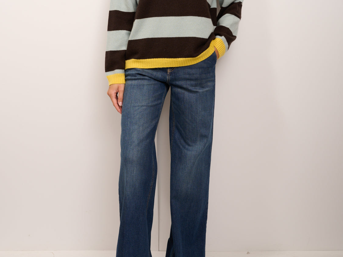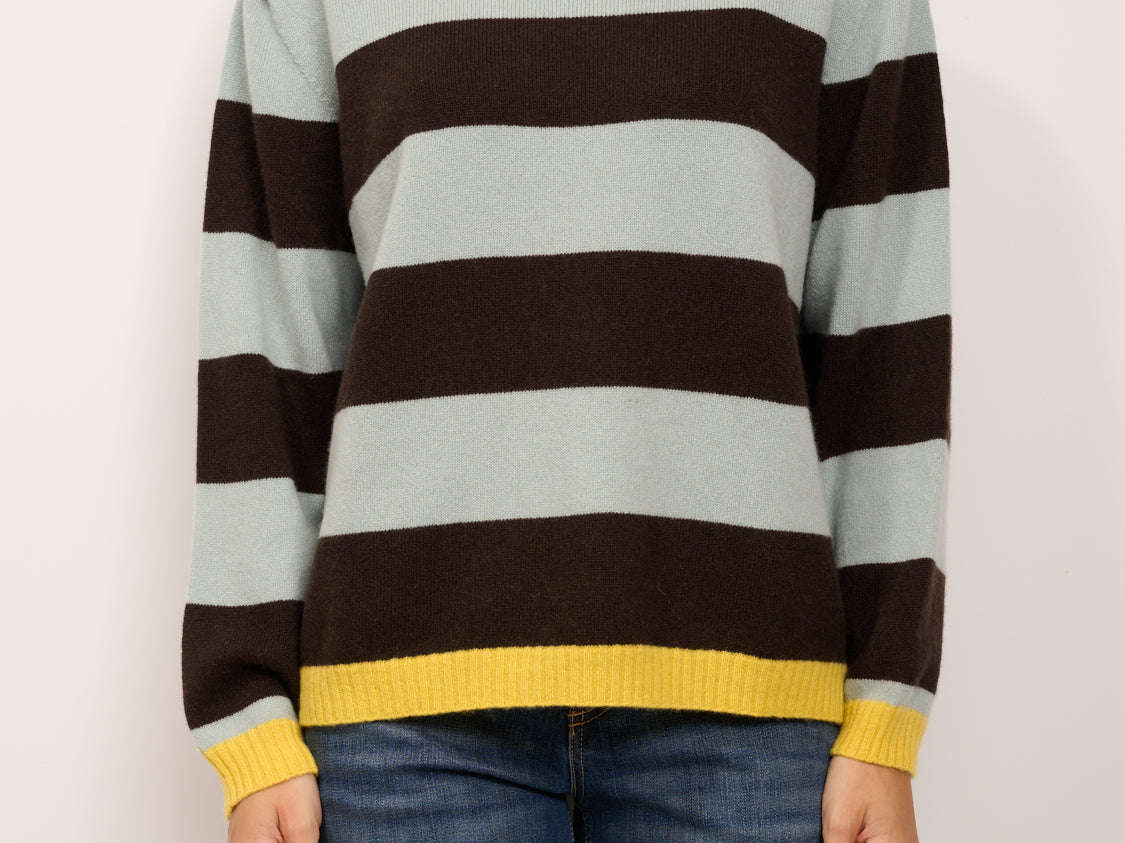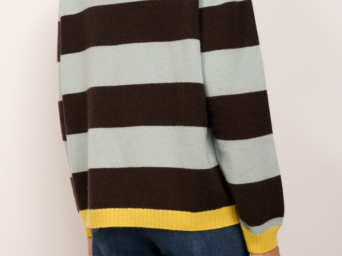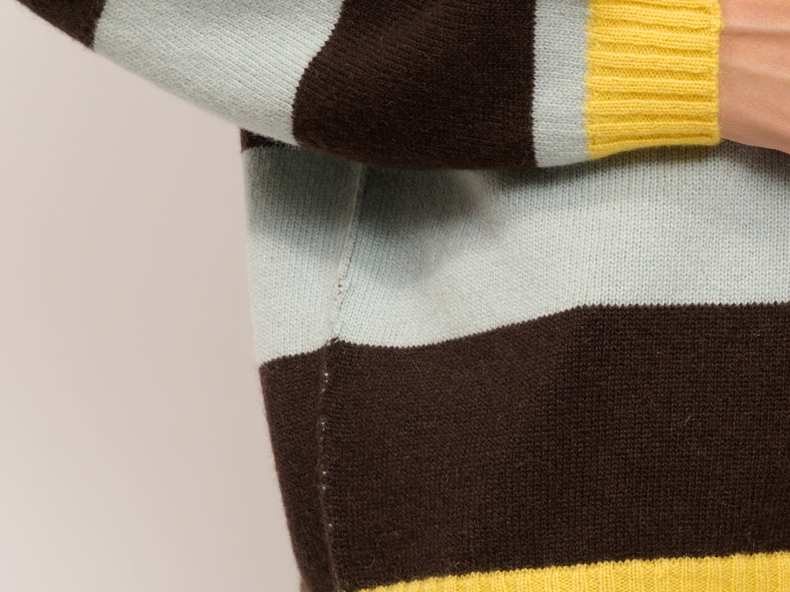 VICOLO - MAGLIA GIROCOLLO RIGA GRANDE - MORO/POLVERE/GIALLO