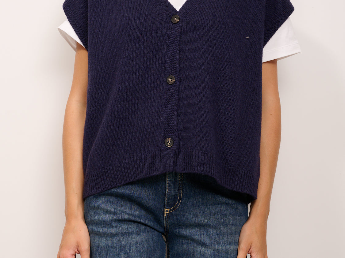 TENSIONE IN - MAGLIA GILET MISTO CACHEMIRE - BLU
