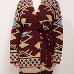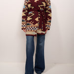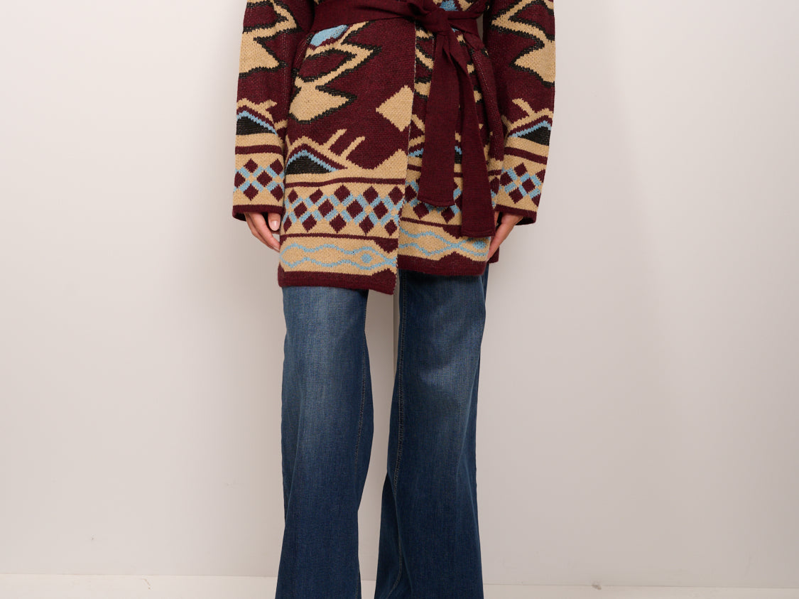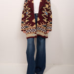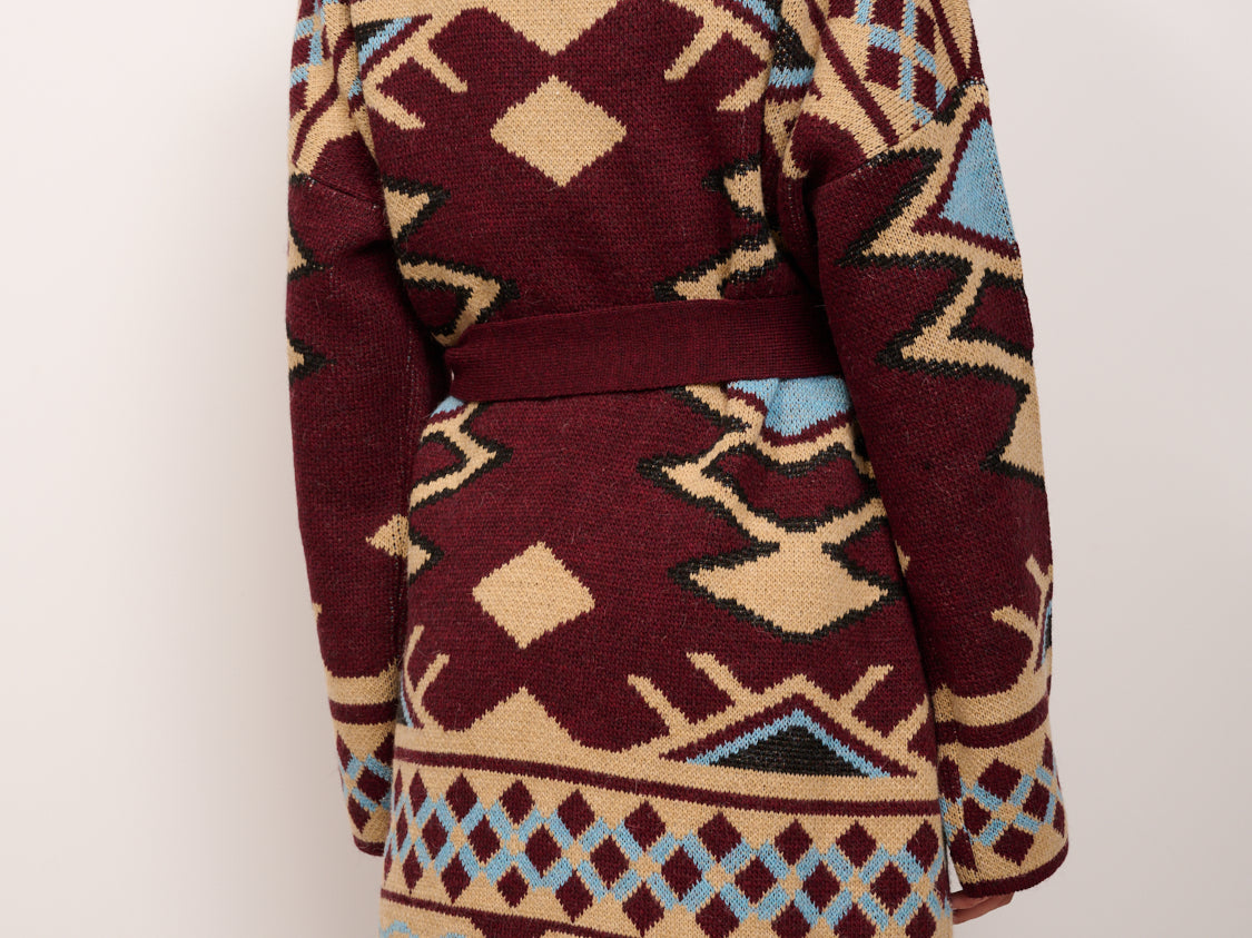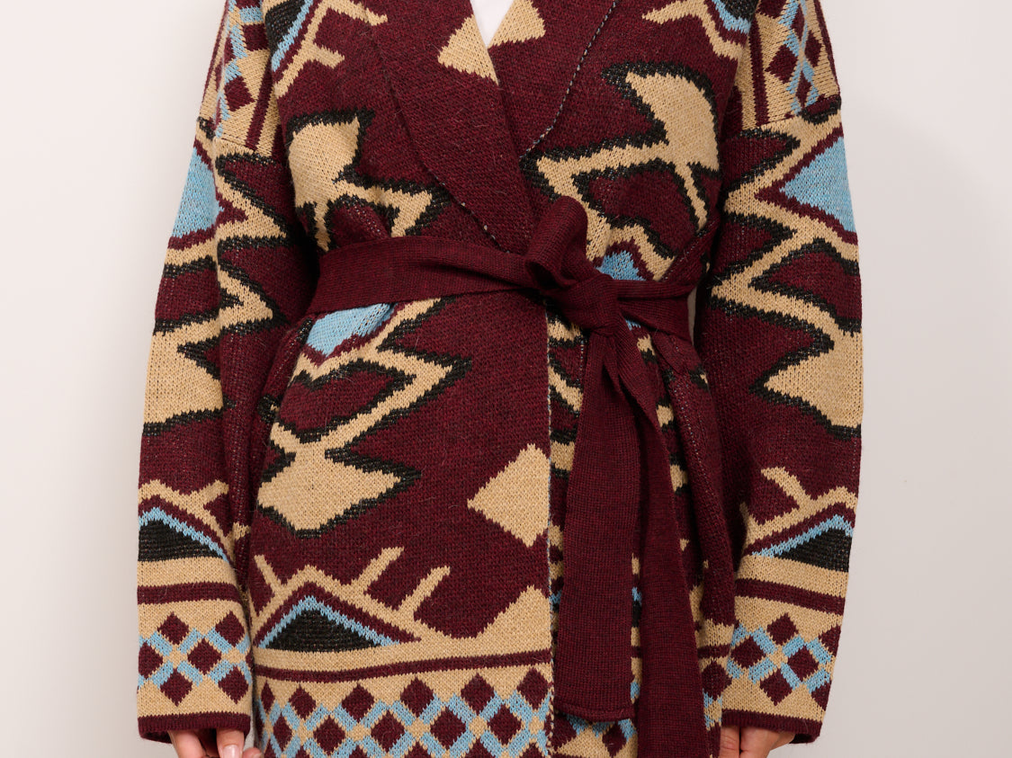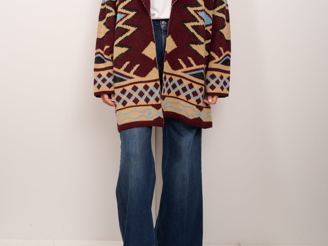 TENSIONE IN - MAGLIA CARDIGAN ETNICO - BORDEAUX