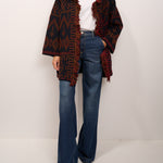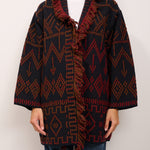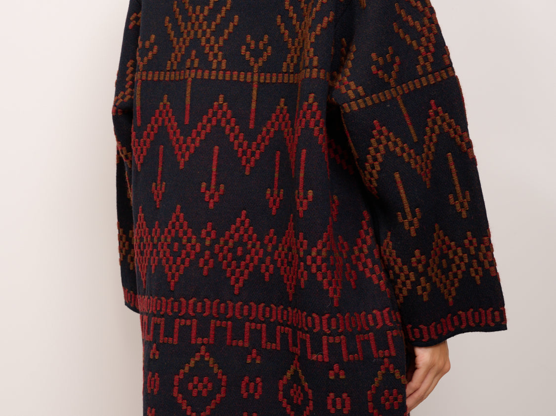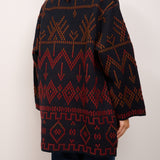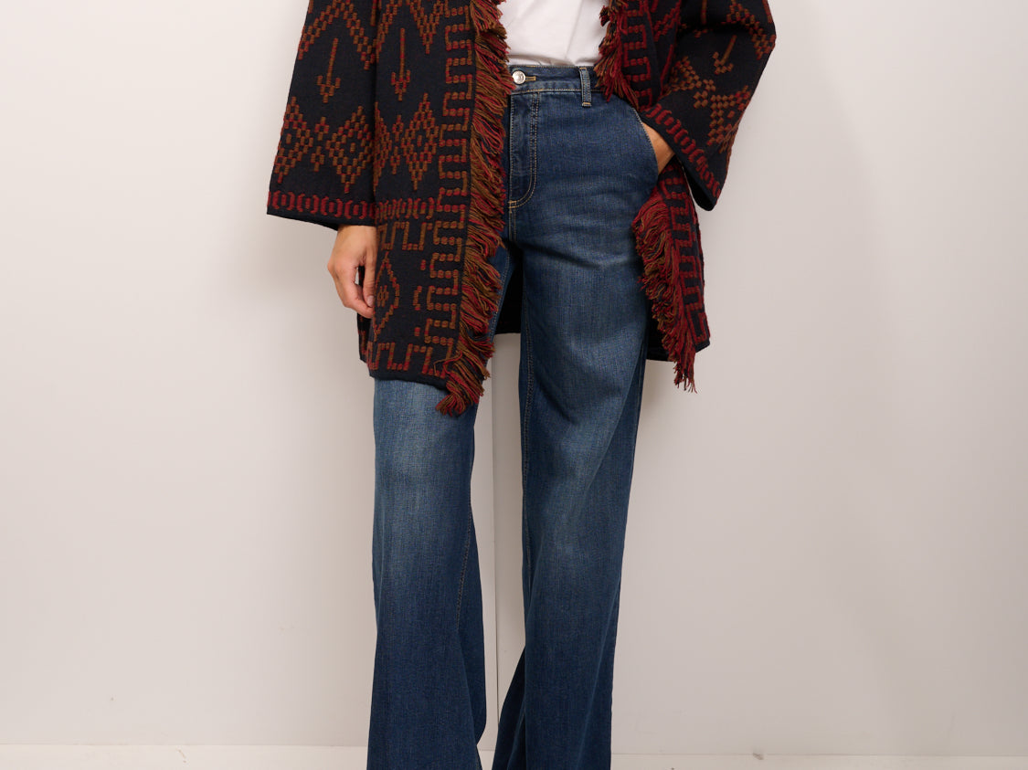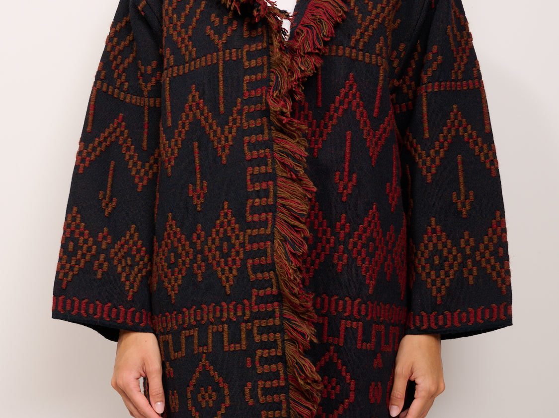 TENSIONE IN - MAGLIA CARDIGAN ETNICO FRANGE - BLU