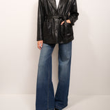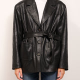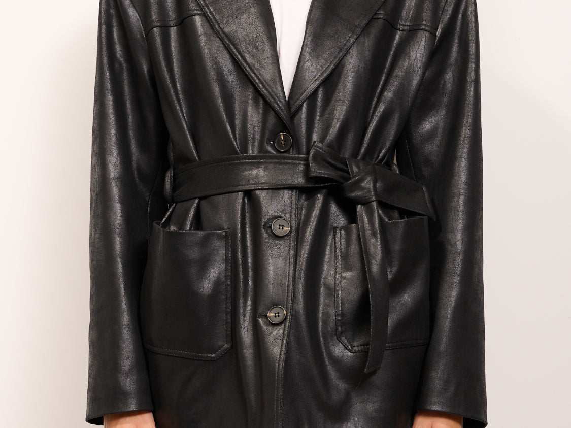 TENSIONE IN - GIACCA ECOPELLE CINTA - NERO