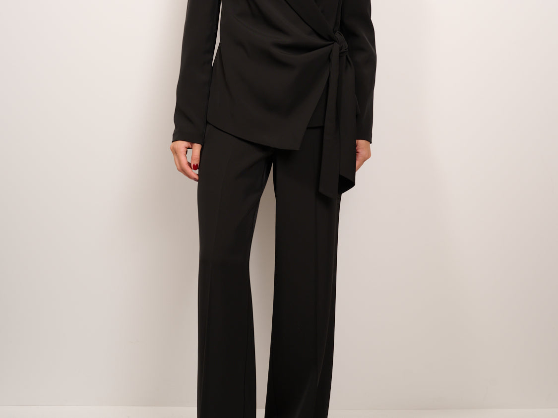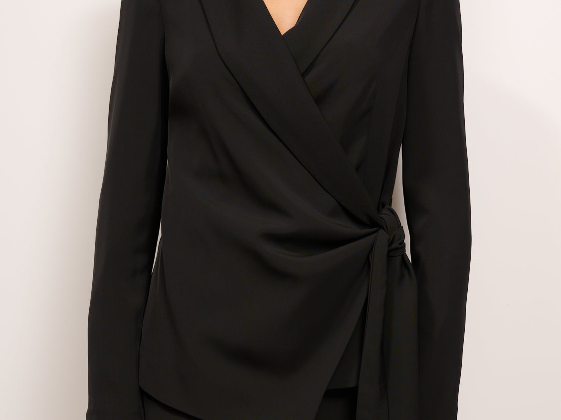 TENSIONE IN - GIACCA CINTA TESSUTO FLUIDO - NERO