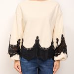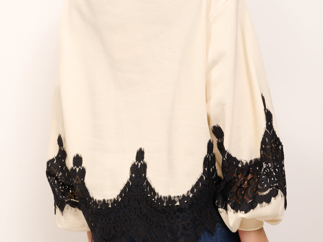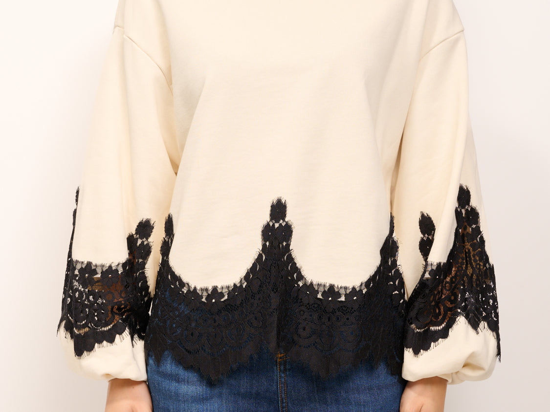 TENSIONE IN - FELPA OVER PIZZO - AVORIO