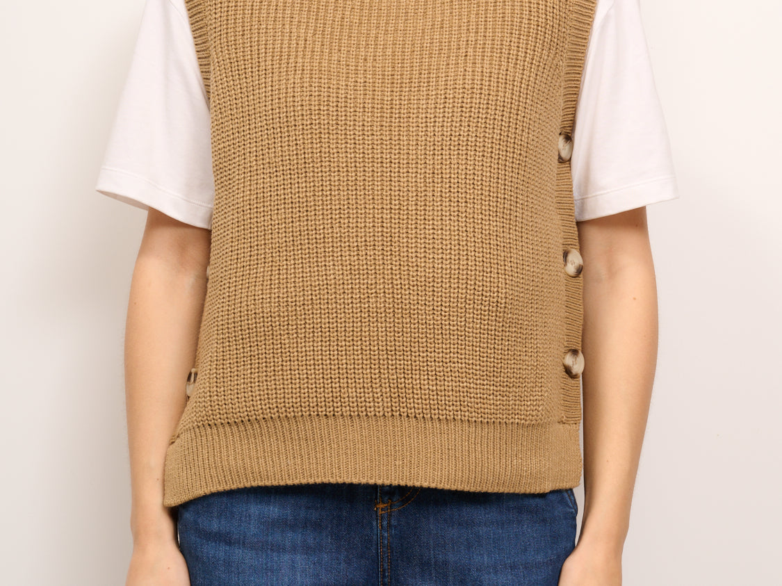 AN'GE - GILET BOTTONI LATERALI - CAMEL