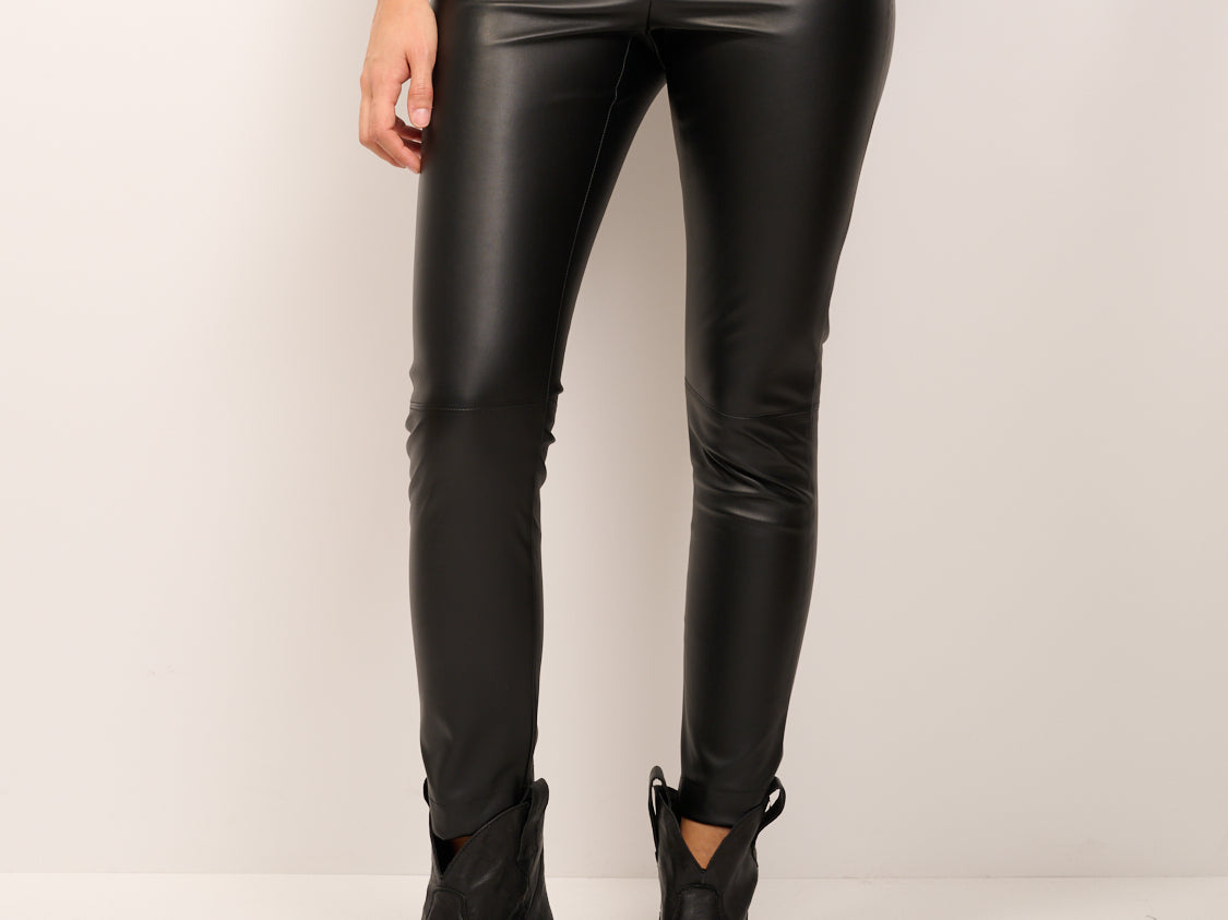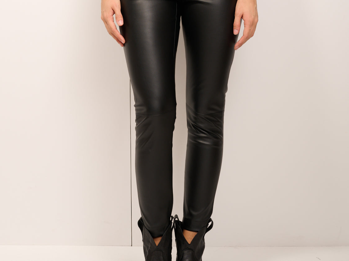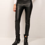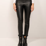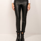 TENSIONE IN - PANTALONE ECOPELLE STRETTO ELASTICO - NERO