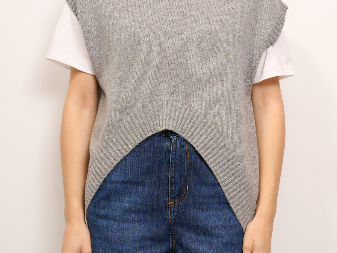 VICOLO - MAGLIA GILET STONDATO - GRIGIO