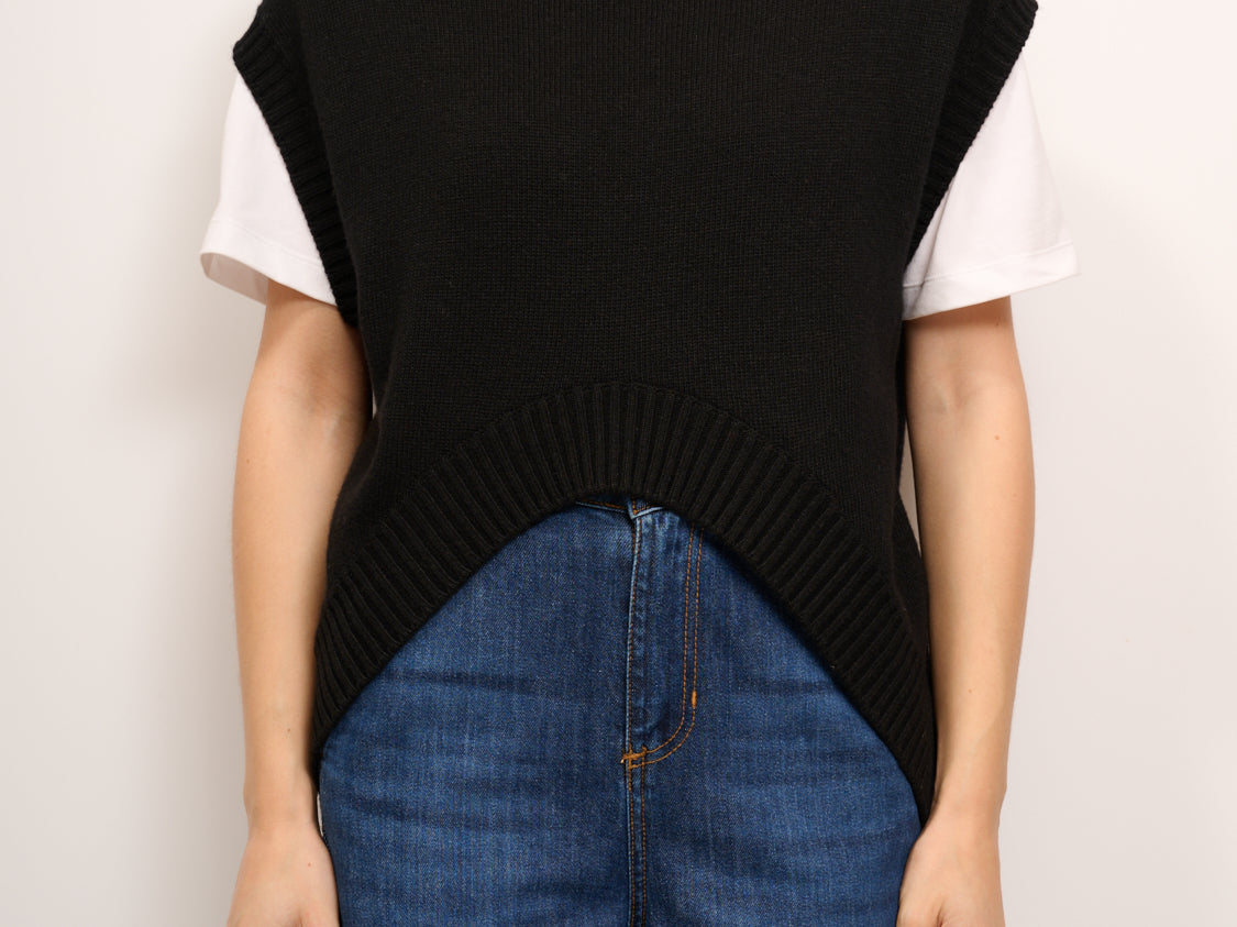 VICOLO - MAGLIA GILET STONDATO - NERO