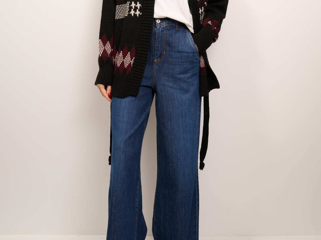 IDENTITY - MAGLIA CARDIGAN FANTASIA - NERO