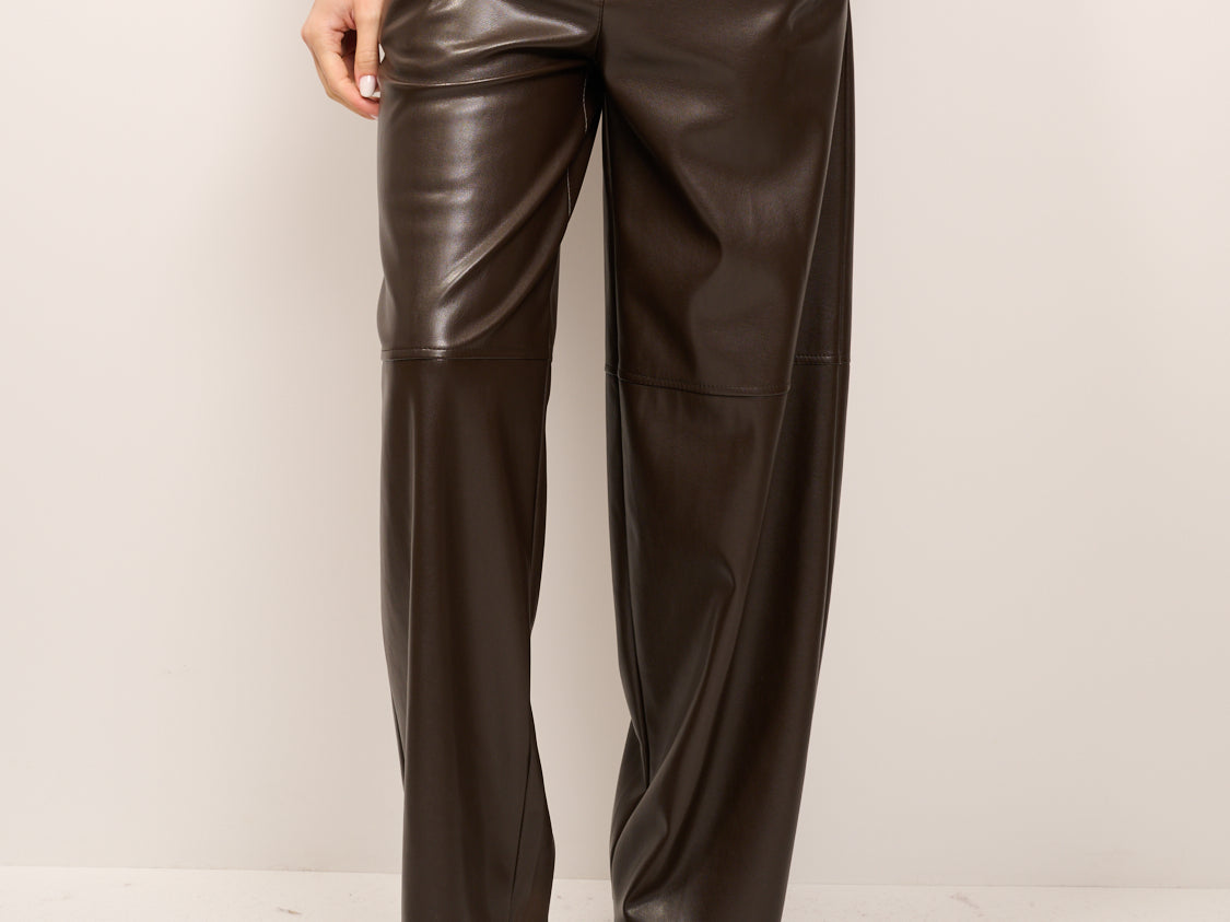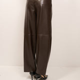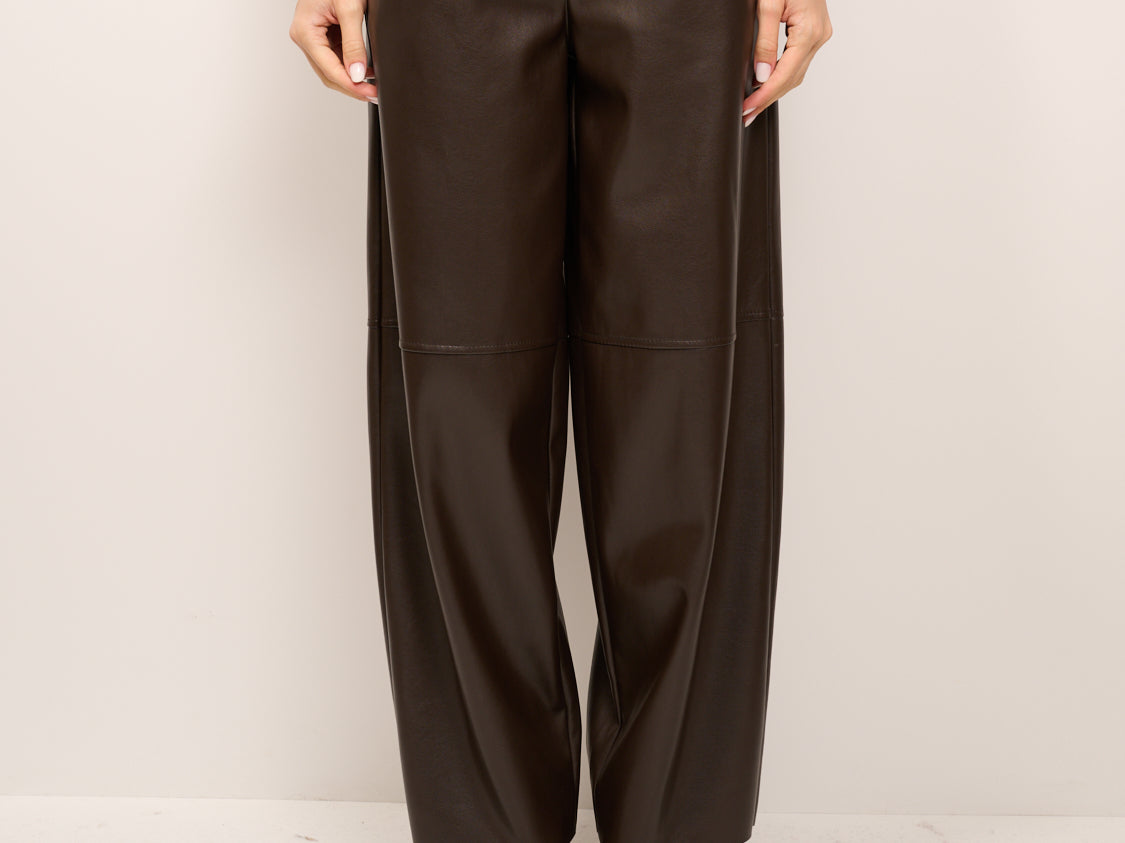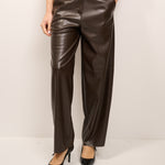 TENSIONE IN - PANTALONE ECOPELLE LARGO - MORO
