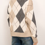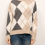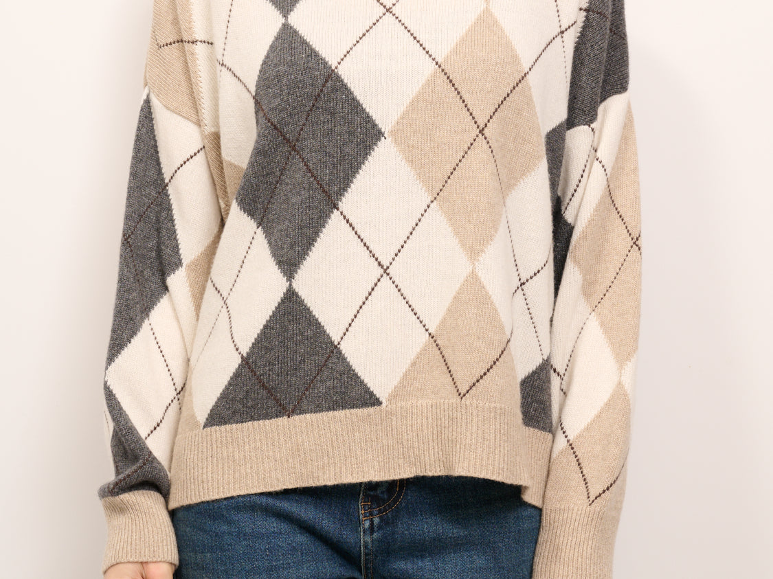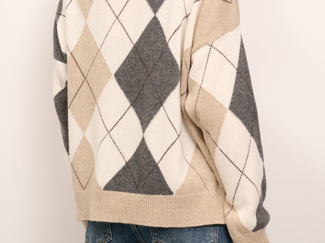 TENSIONE IN - MAGLIA GIROCOLLO ROMBI - CASHA'/PANNA/ANTRACITE